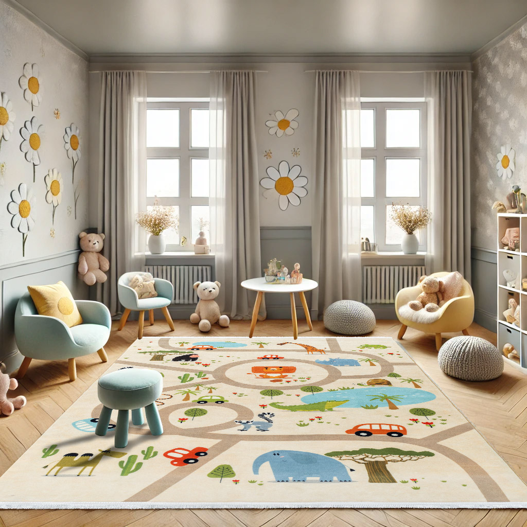 فرش ماشینی کودک طرح جاده ماجراجویی کد 101291 کرم 700 شانه