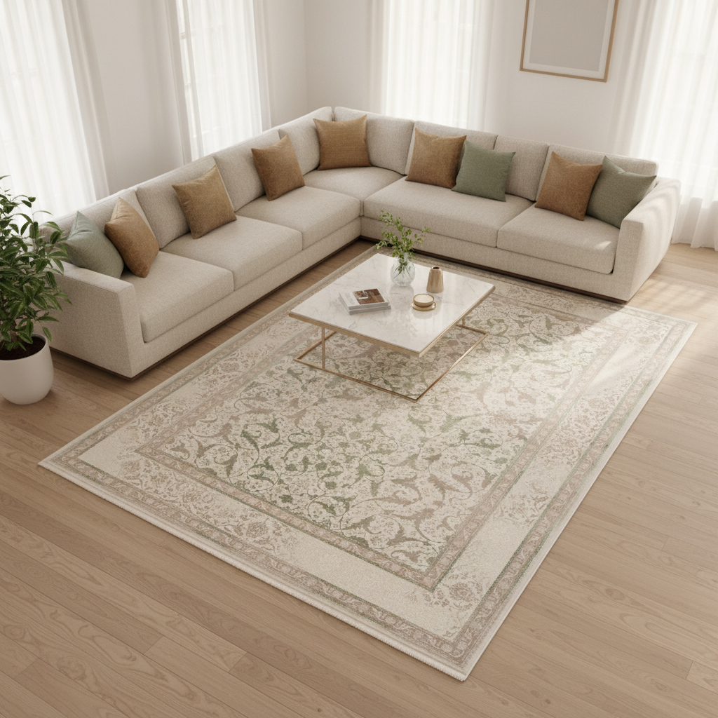 فرش ماشینی آوانته طرح 10AV0030 سبز 1200 شانه گل ابریشم