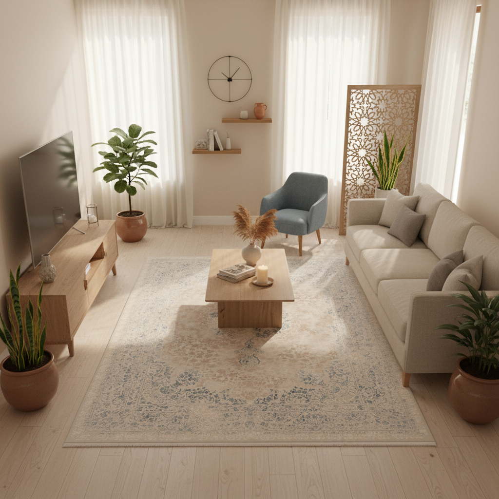 فرش ماشینی آوانته طرح 10AV0090 آبی 1200 شانه گل ابریشم