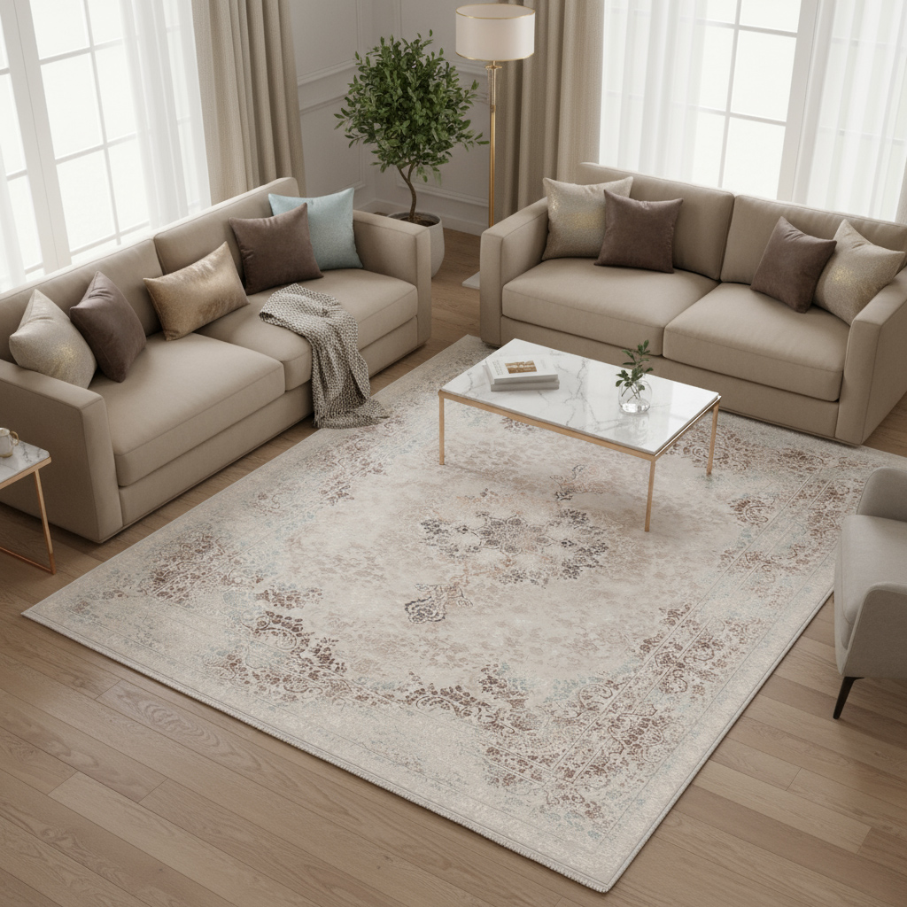 فرش ماشینی آوانته طرح 10AV0090 فندقی 1200 شانه گل ابریشم