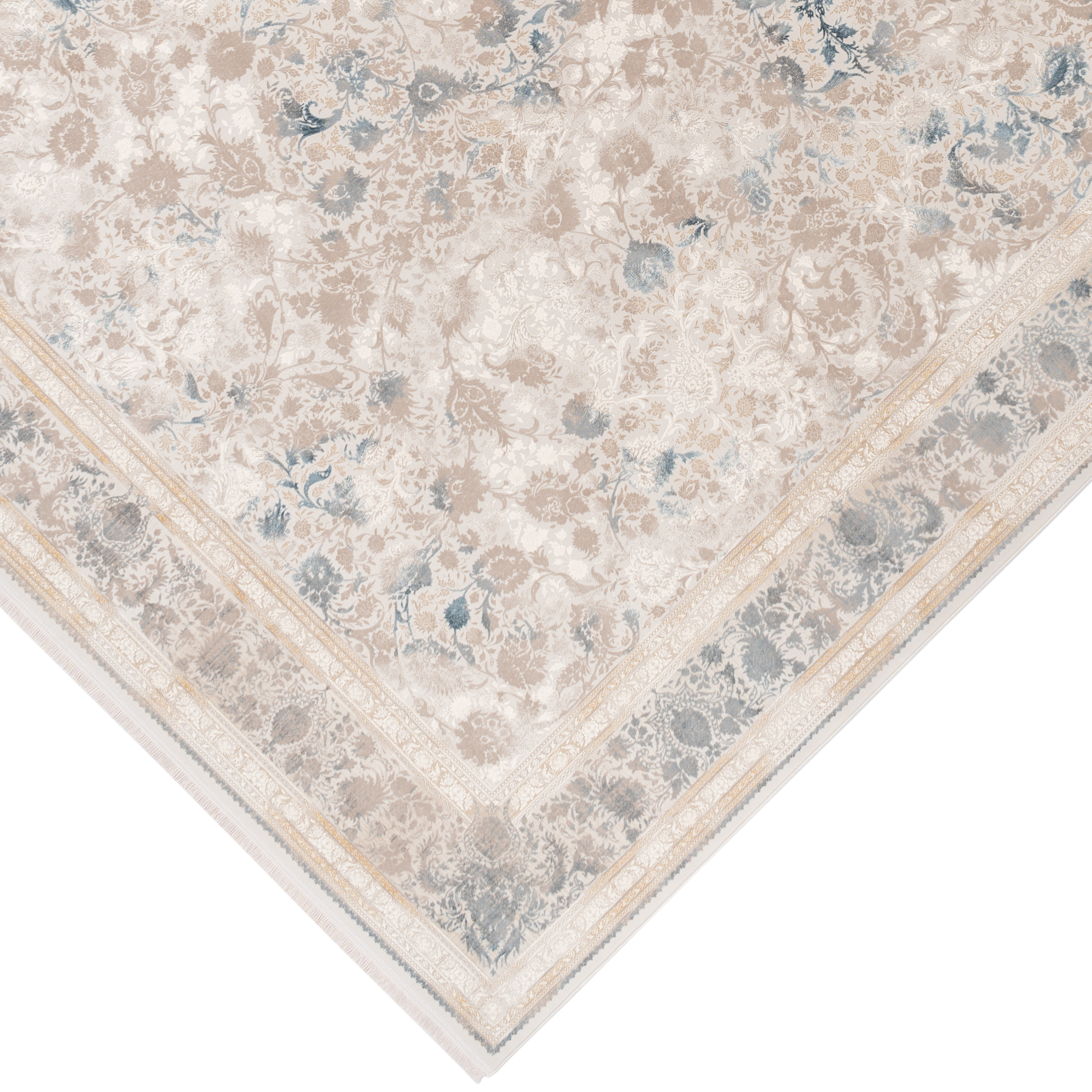 فرش ماشینی آوانته طرح 10Av0120 آبی 1200 شانه گل ابریشم
