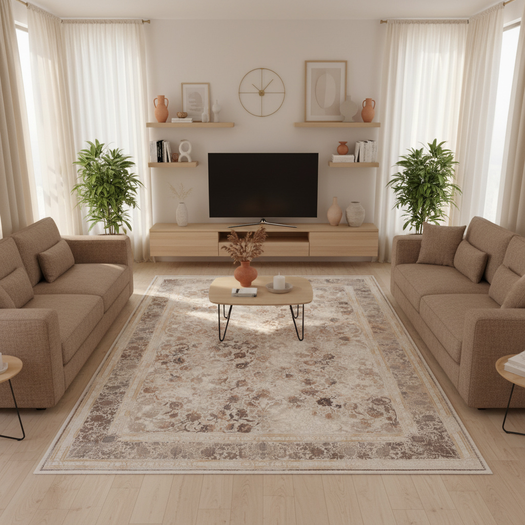 فرش ماشینی آوانته طرح 10Av0120 فندقی 1200 شانه گل ابریشم