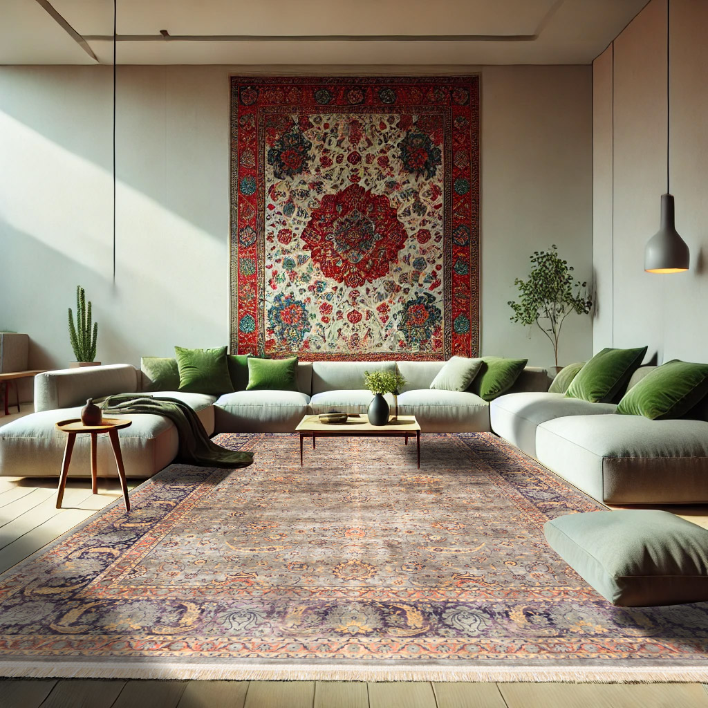 فرش ماشینی اترنو طرح 25NR0080 زیتونی 1000 شانه