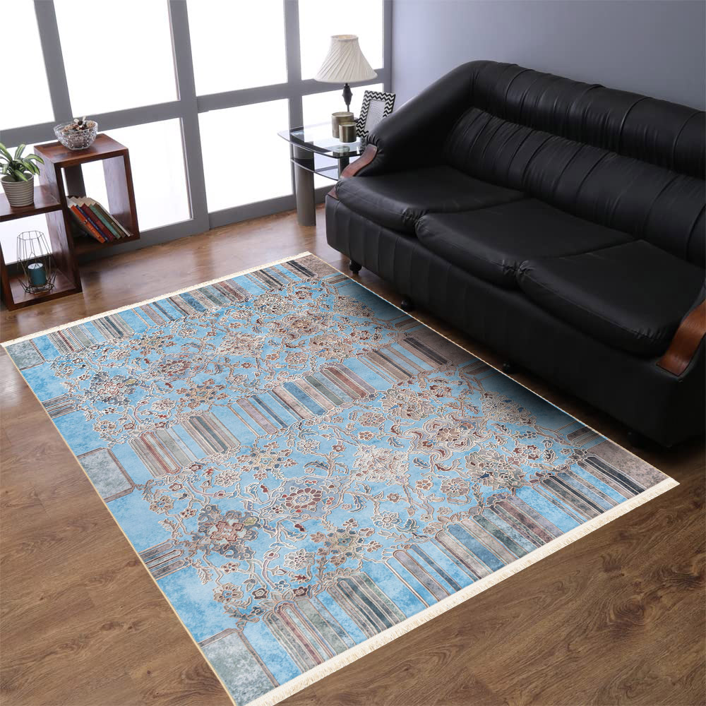 فرش ماشینی اترنو طرح 25NR0140 آبی 1000 شانه
