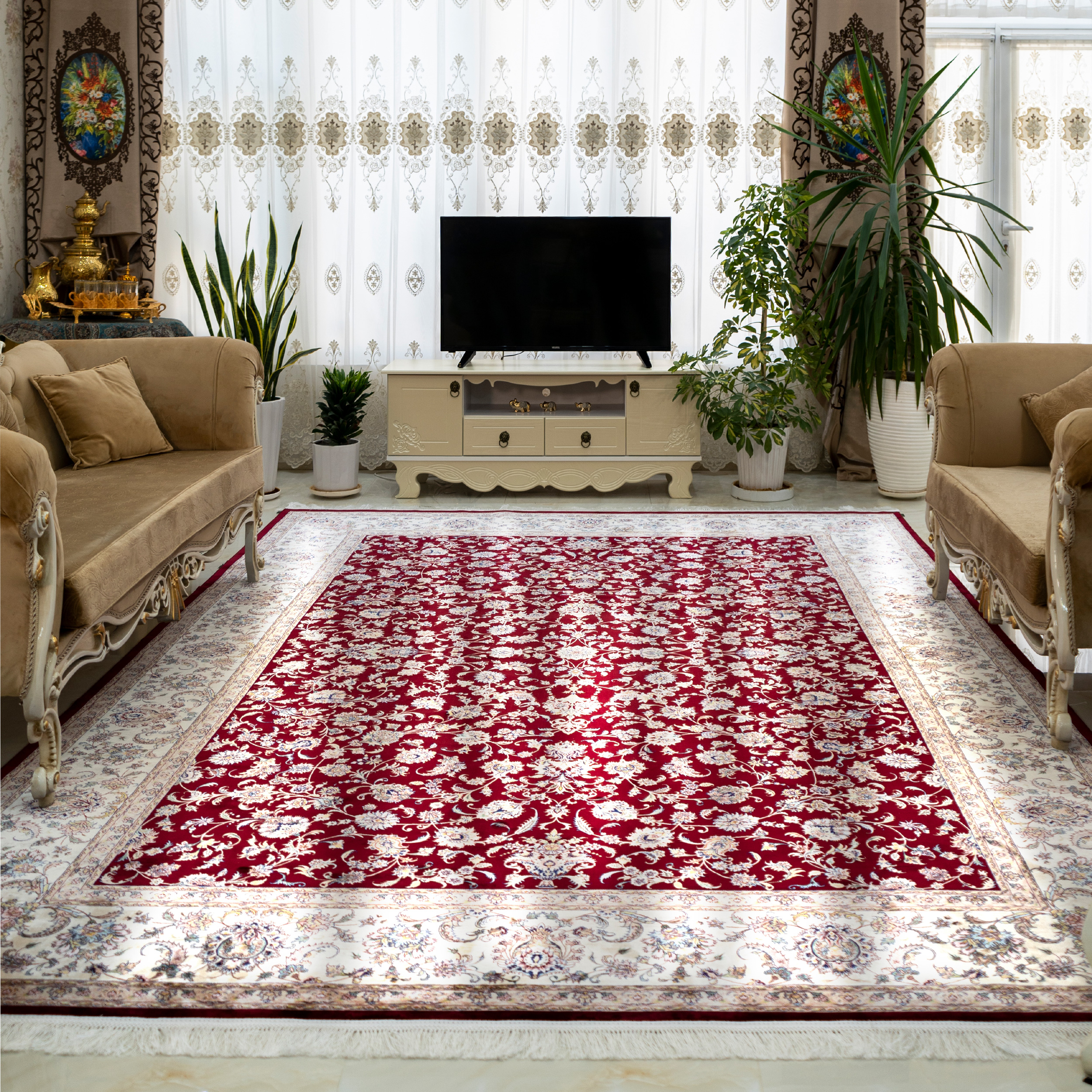 فرش ماشینی ایران طرح شاه عباسی لاکی 1200شانه