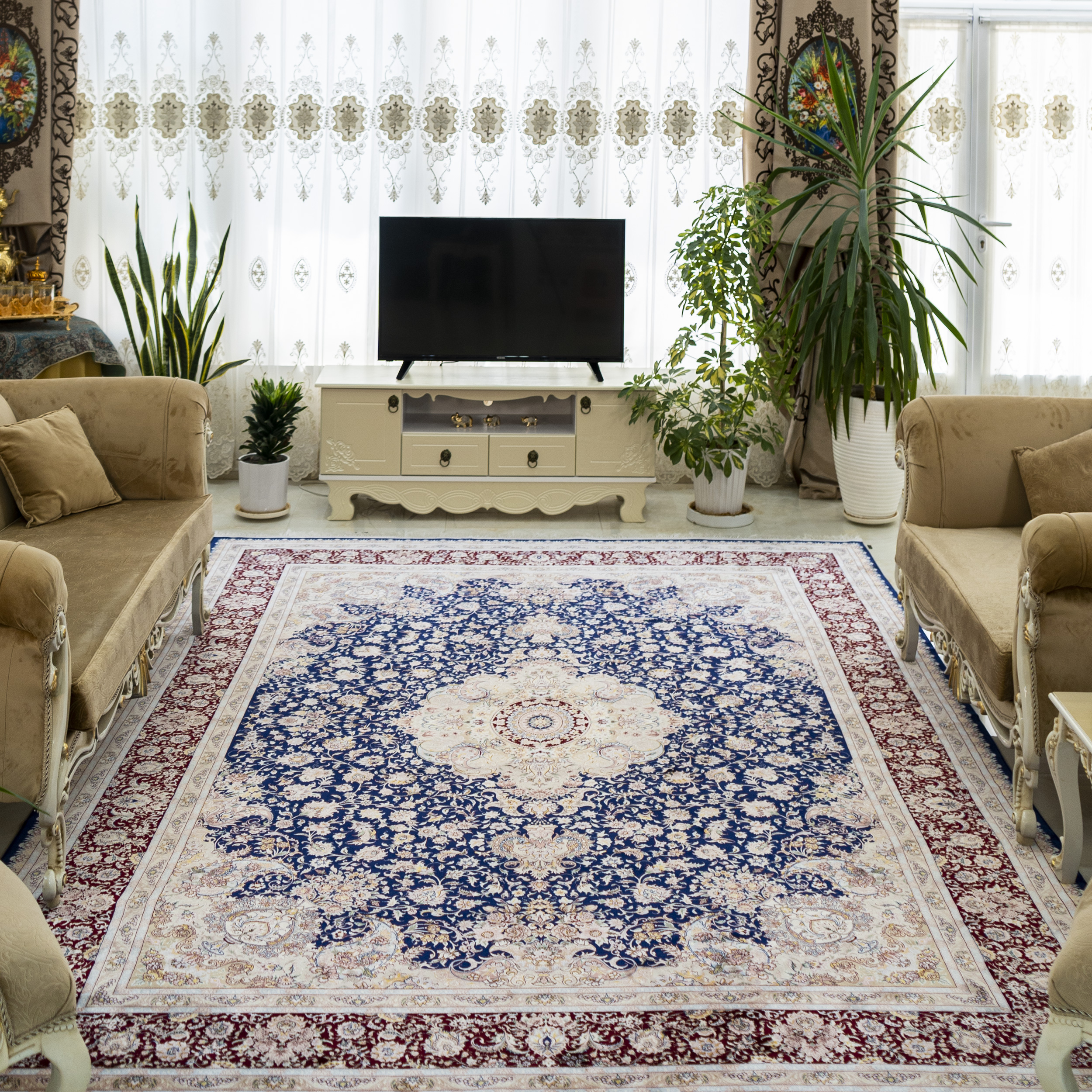 فرش ماشینی ایران طرح محراب سرمهای 1200شانه
