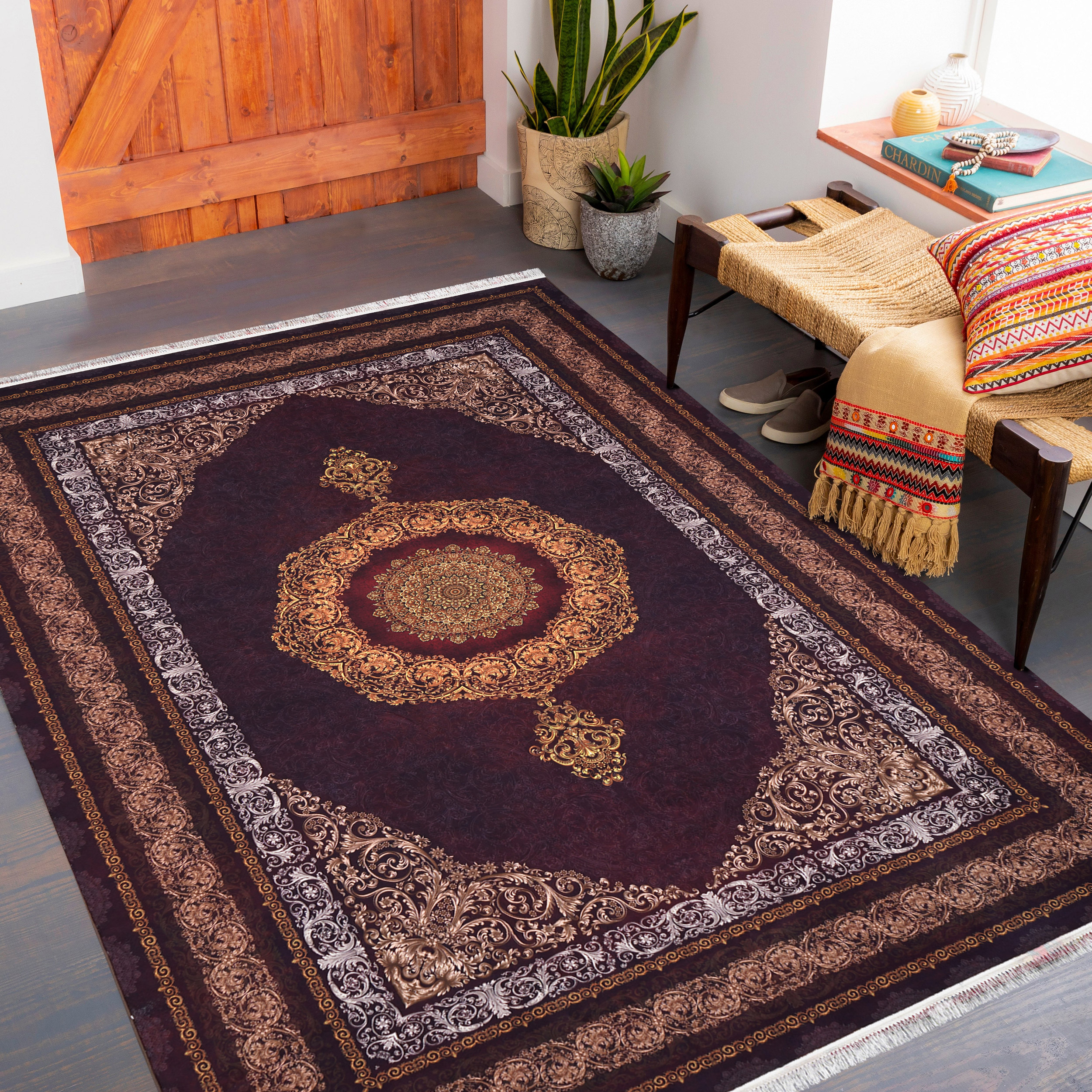 فرش ماشینی روچک طرح 400405 زرشکی 1200 شانه