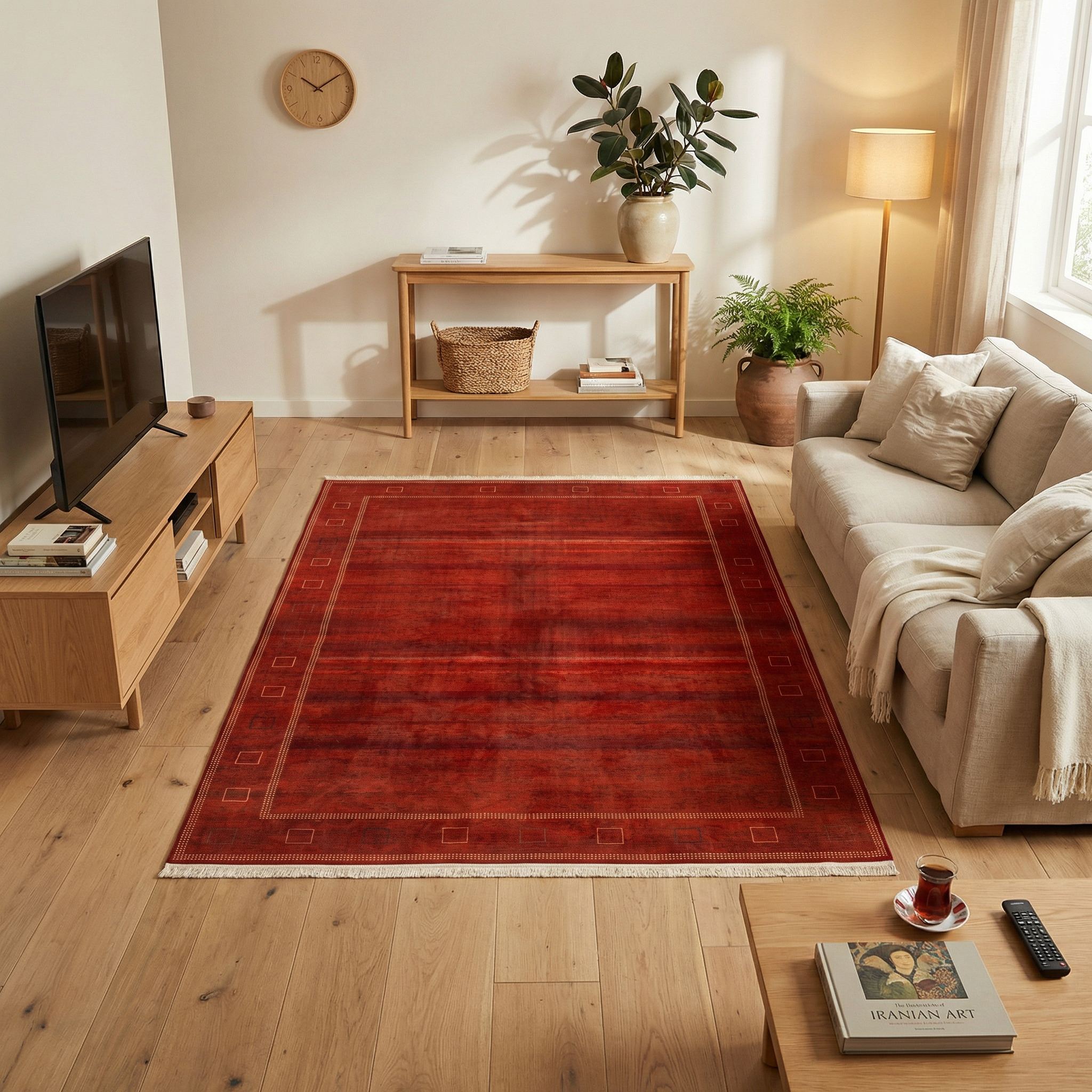 در هنگام خرید فرشهای با طیف رنگ قرمز در نظر داشته باشید که این رنگ را بهعنوان رنگ قالب دکوراسیون انتخاب نکنید و در خرید سایر اجزا منزل از ترکیب سایر رنگها با این رنگ استفاده نمایید تا تعادل را در محیط خانه برقرار کنید. اگر از رنگهای تیره مانند سیاه در کنار رنگ لاکی یا شرابی استفاده نمایید بر سنگینی و لوکس بودن فضا افزوده میشود و اگر به سمت سفید حرکت کنید، فضای شاداب و سبکی را تجربه خواهید نمود. استفاده از رنگهای خنثی مانند خاکستری نیز در کنار رنگهای با پایه قرمز، آرامش بیشتری بر فضا خواهد افزود.