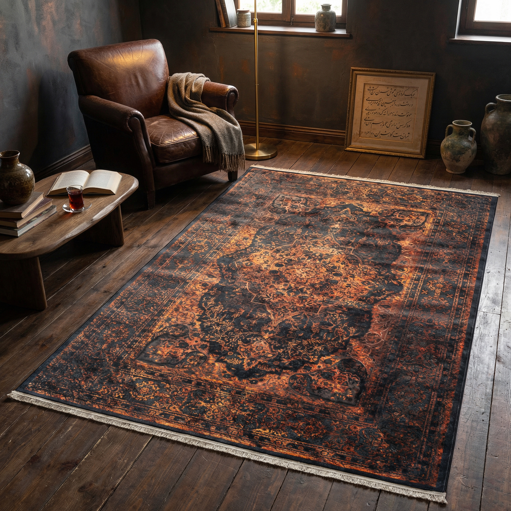 فرش ماشینی سنتی طرح 25NB0080 دودی 1000 شانه