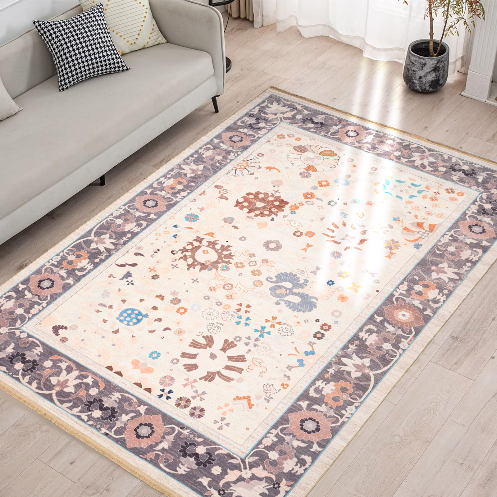 فرش ماشینی سنتی طرح 900403 کرم 1000 شانه