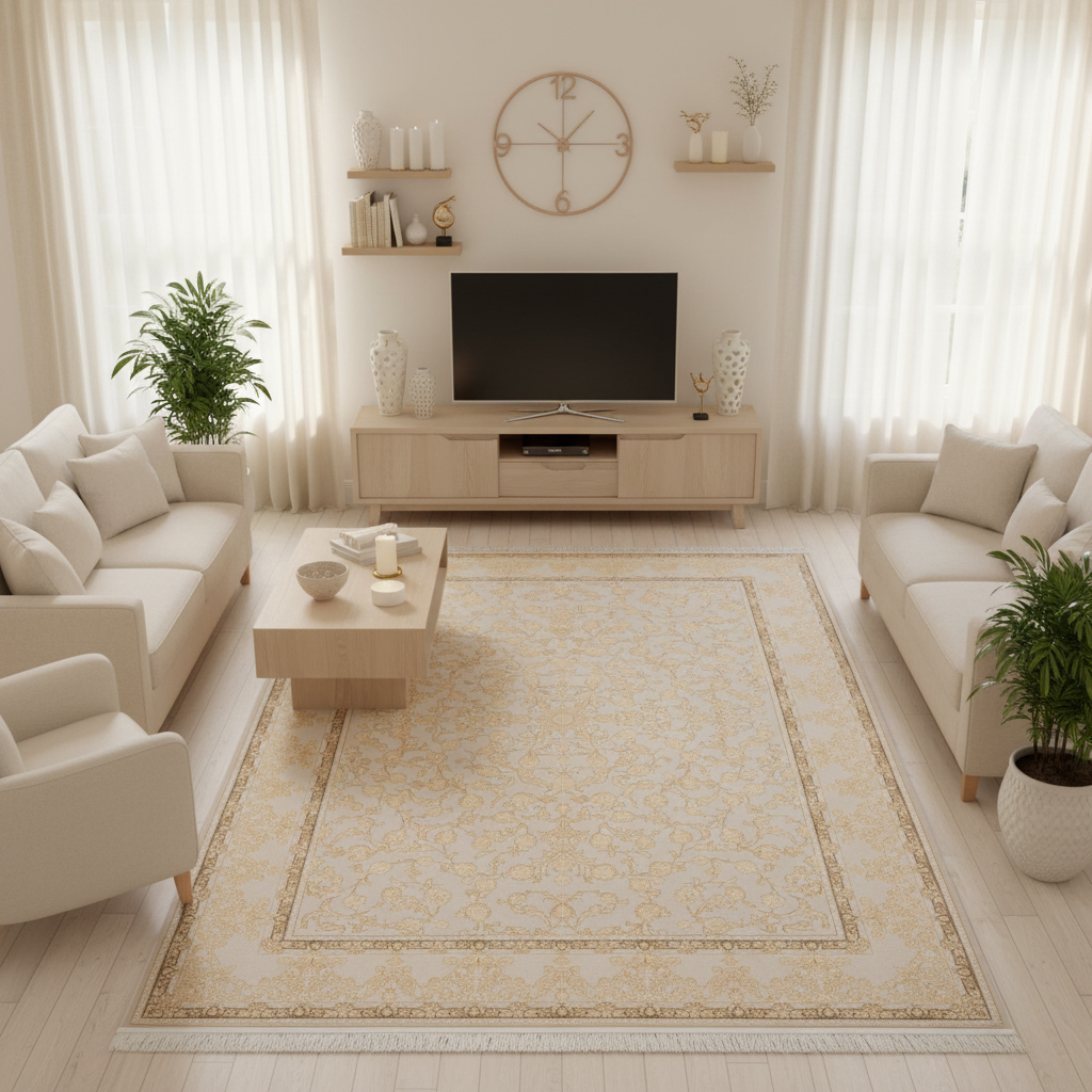 فرش ماشینی طرح 1000015065 نیلی 1200 شانه گل برجسته