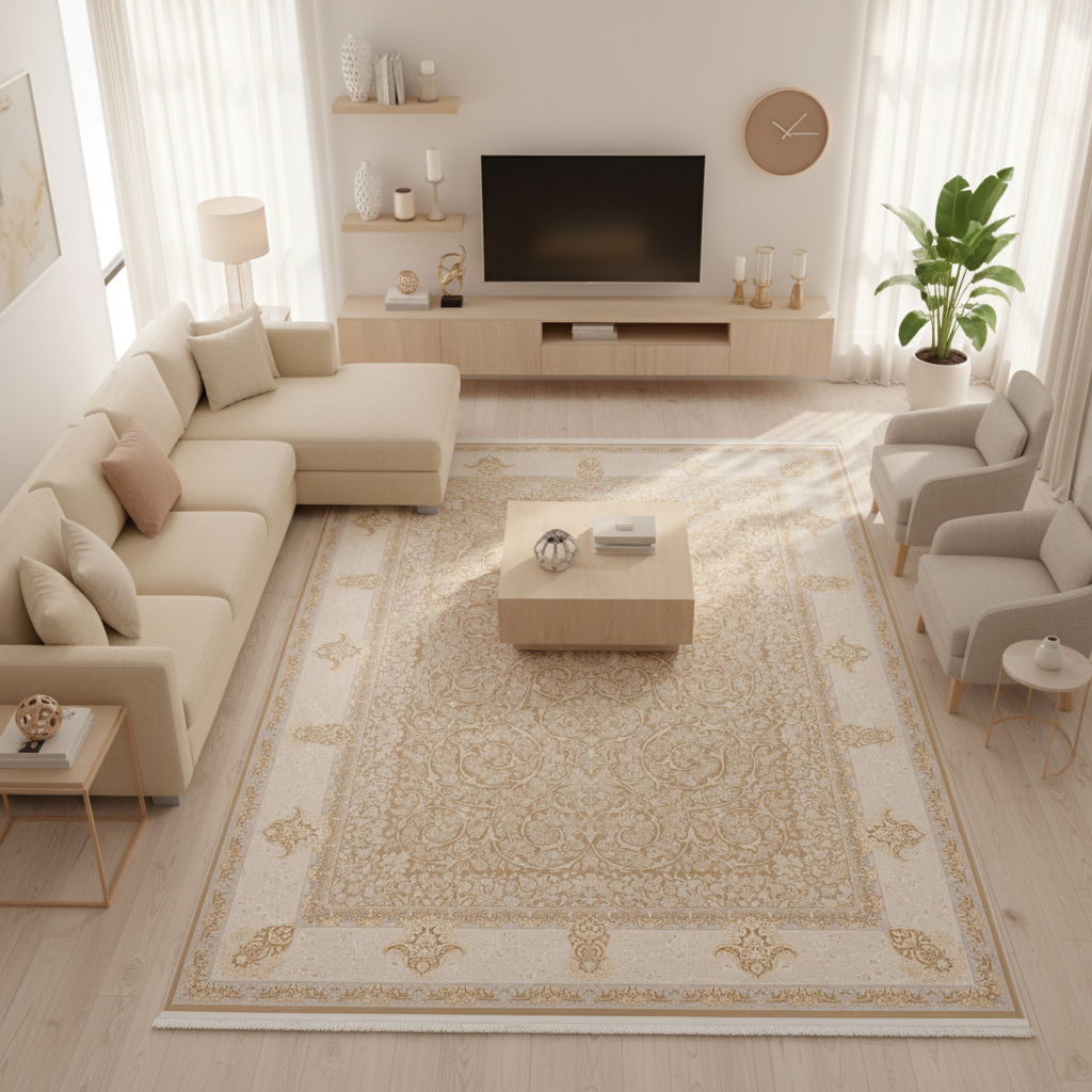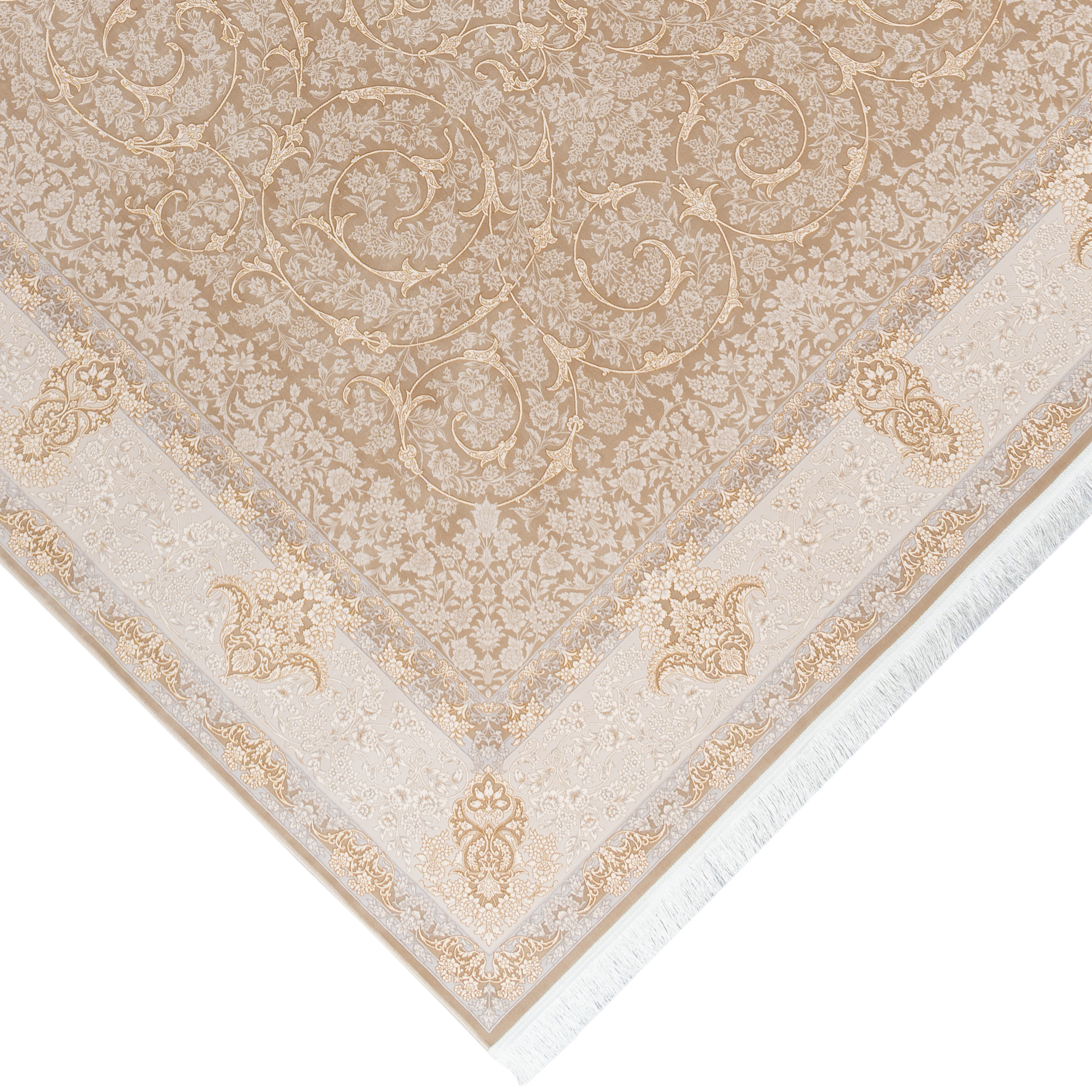 فرش ماشینی طرح 1000036017 نسکافه ای 1200 شانه گل برجسته