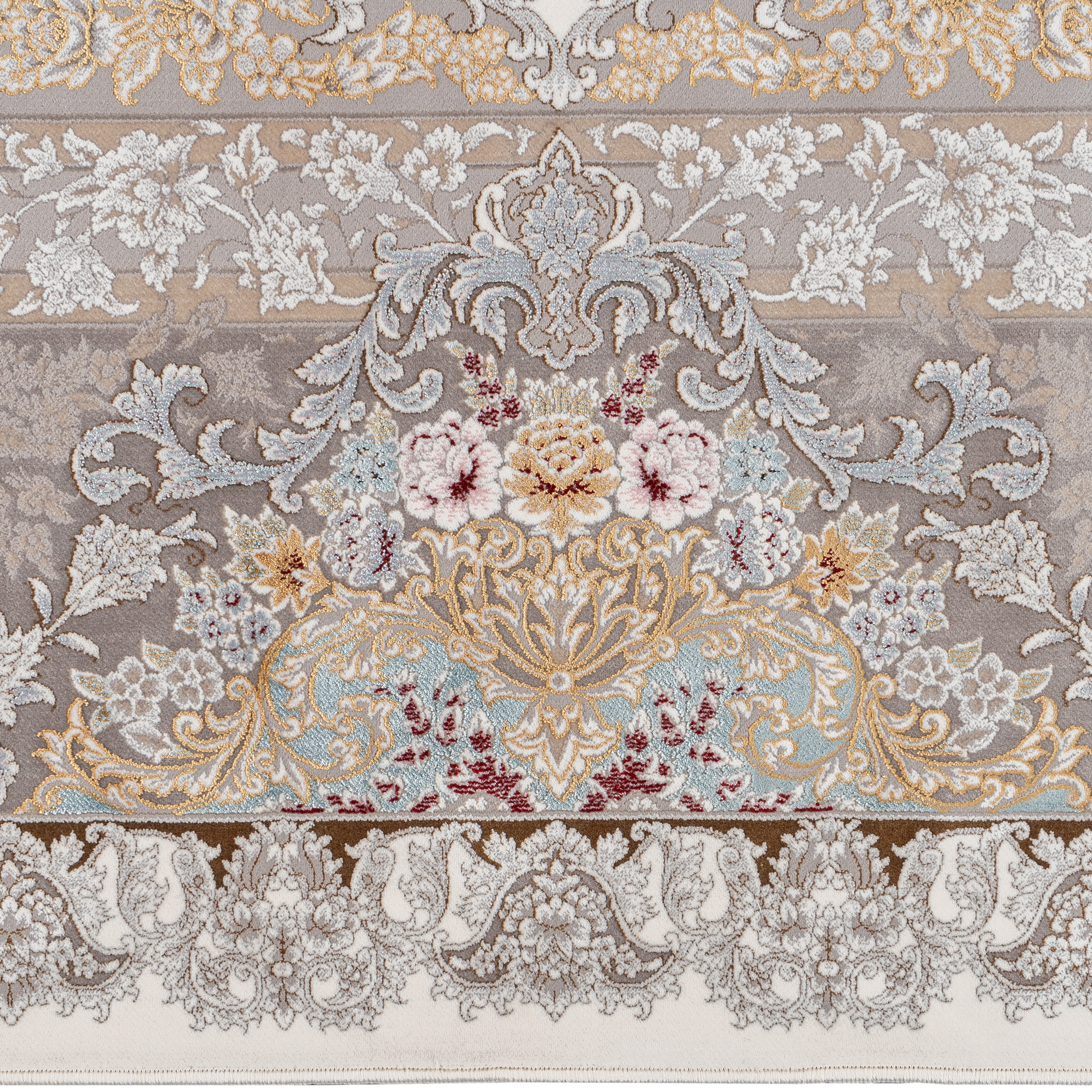 فرش ماشینی طرح 10EL0240 کرم 1200 شانه گل ابریشم