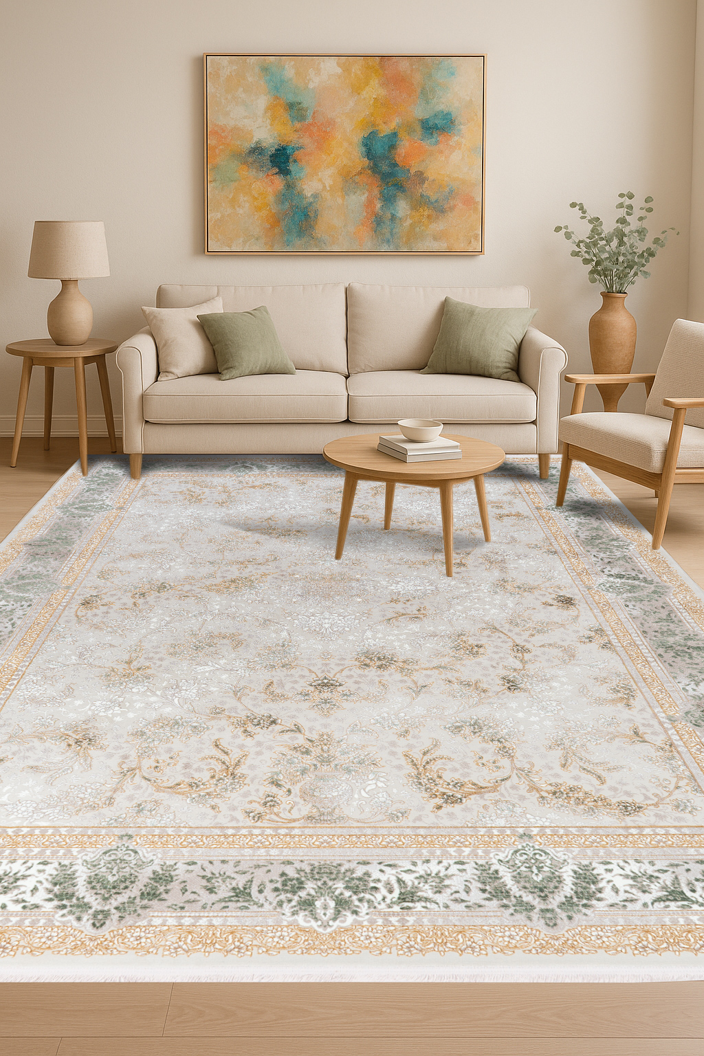 فرش ماشینی طرح 10HA0050 صدفی 700 شانه