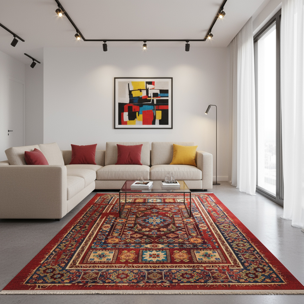 فرش ماشینی فانتزی طرح 25TT0100 قرمز 700 شانه