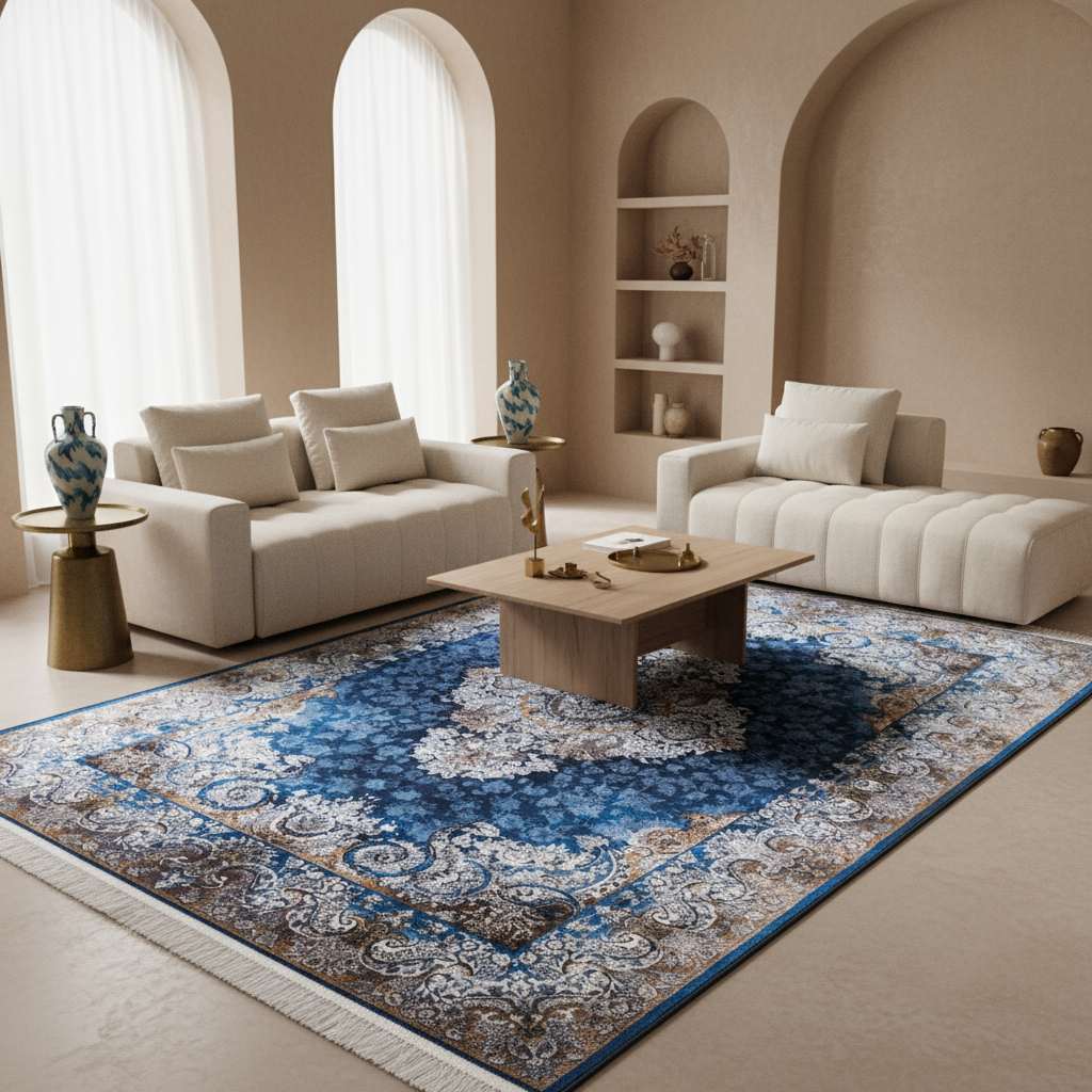 فرش ماشینی نئوکلاسیک 2555007040 آبی 1200 شانه