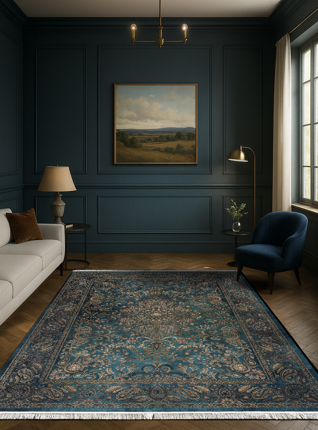 فرش ماشینی نئوکلاسیک 25CN0050 سبز 1200 شانه