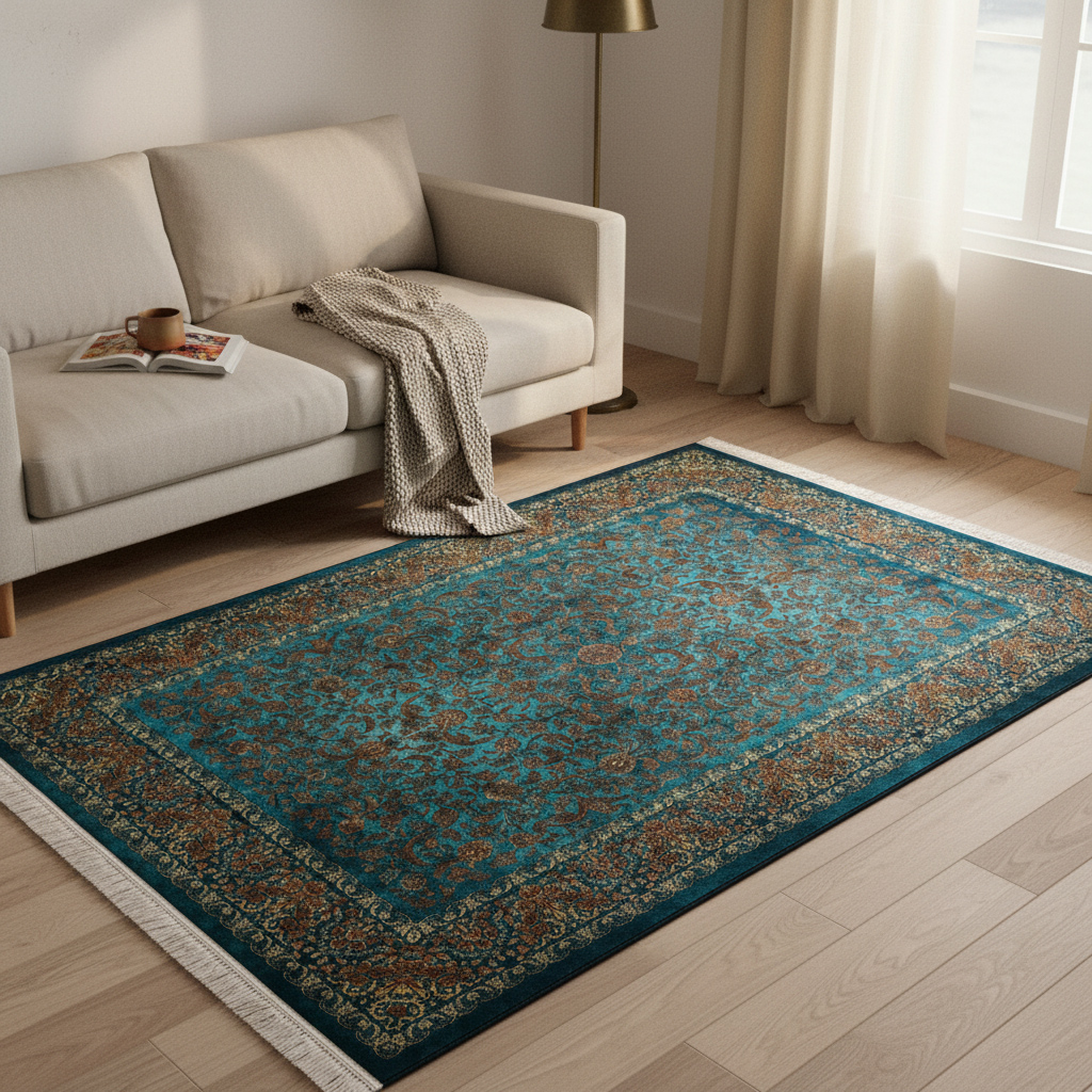 فرش ماشینی نئوکلاسیک 25CN0110 سبز 1200 شانه