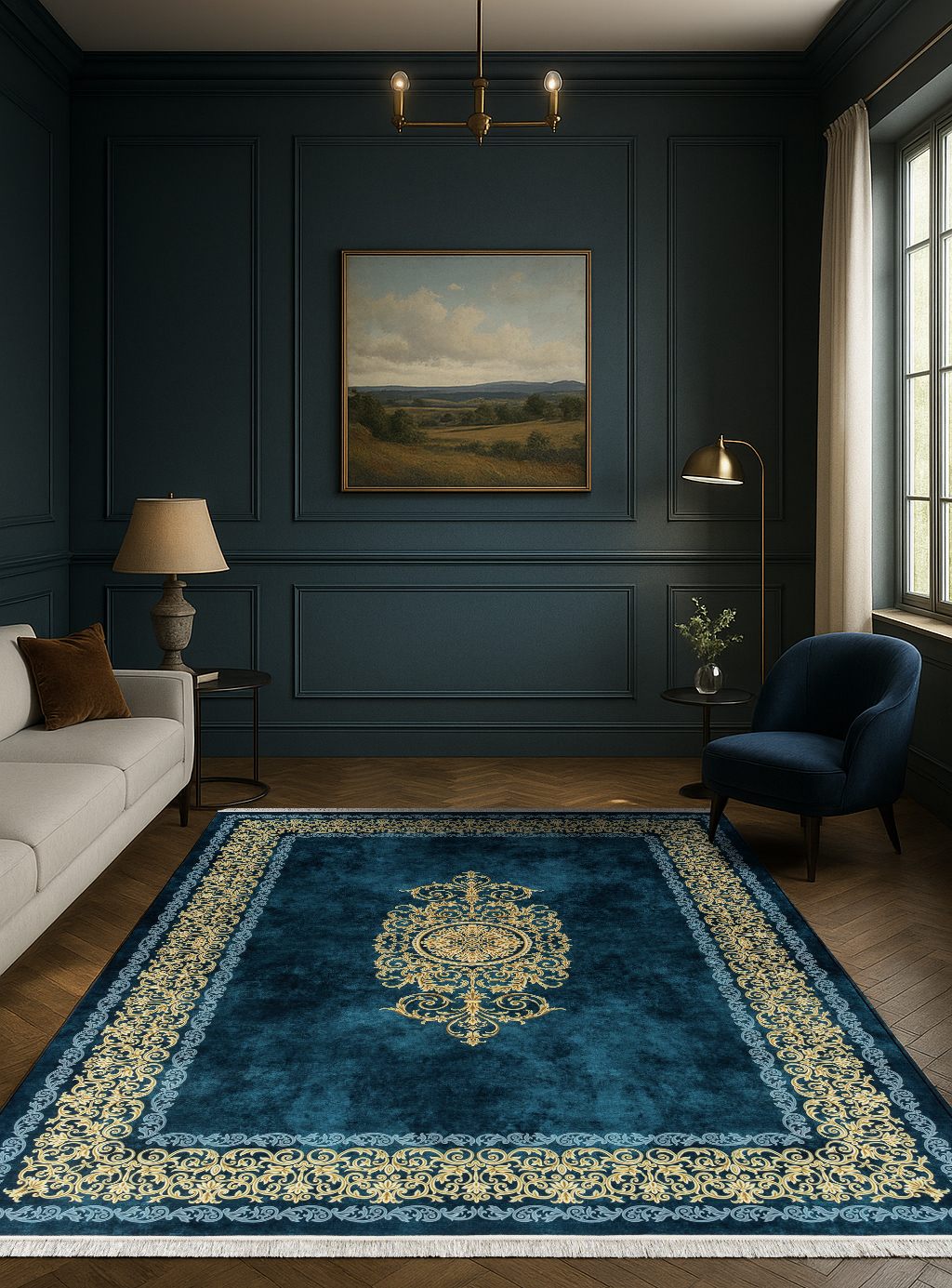 فرش ماشینی نئوکلاسیک 25CN0140 سبز آبی 1200 شانه
