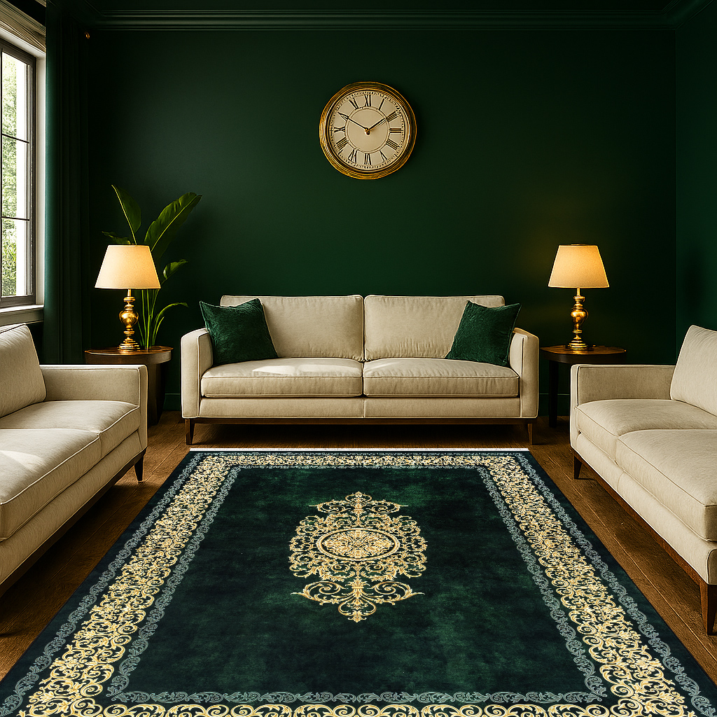 فرش ماشینی نئوکلاسیک 25CN0140 سبز 1200 شانه