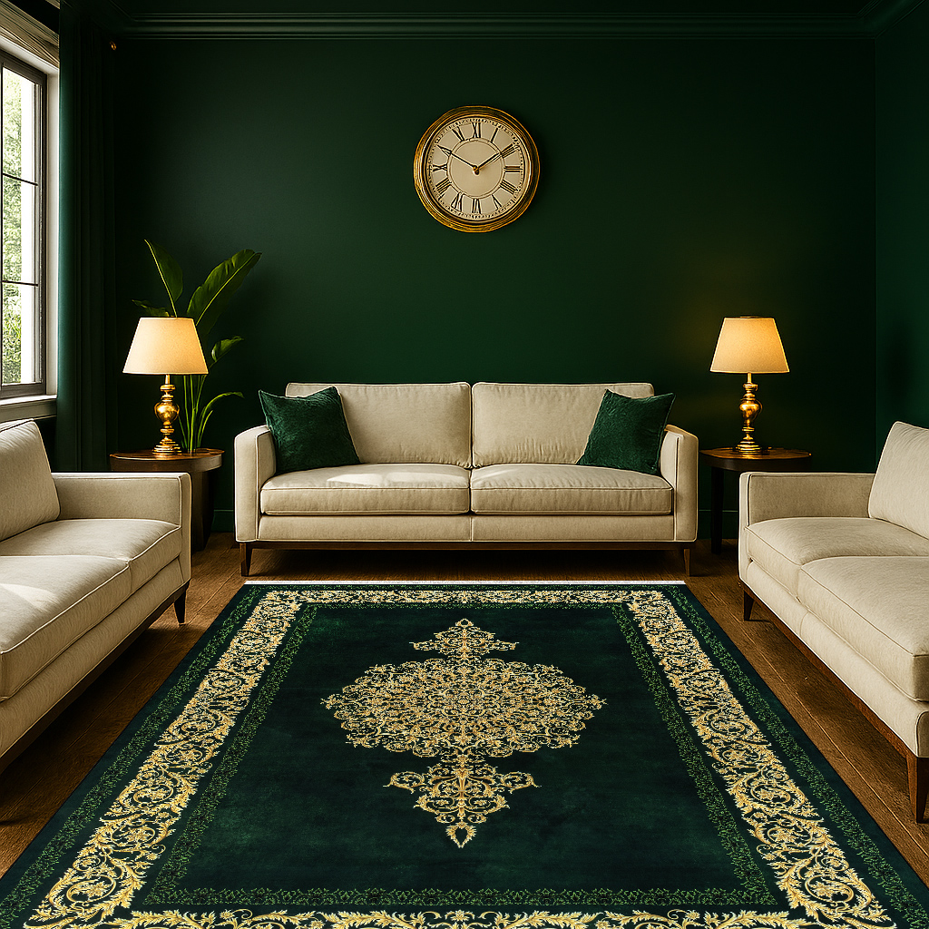 فرش ماشینی نئوکلاسیک 25CN0150 سبز 1200 شانه