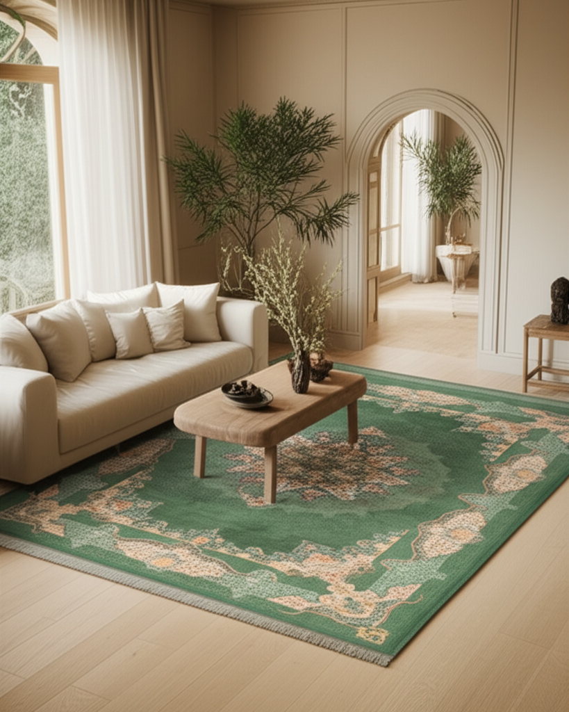 فرش ماشینی نئوکلاسیک 25nv0020 سبز 1200 شانه