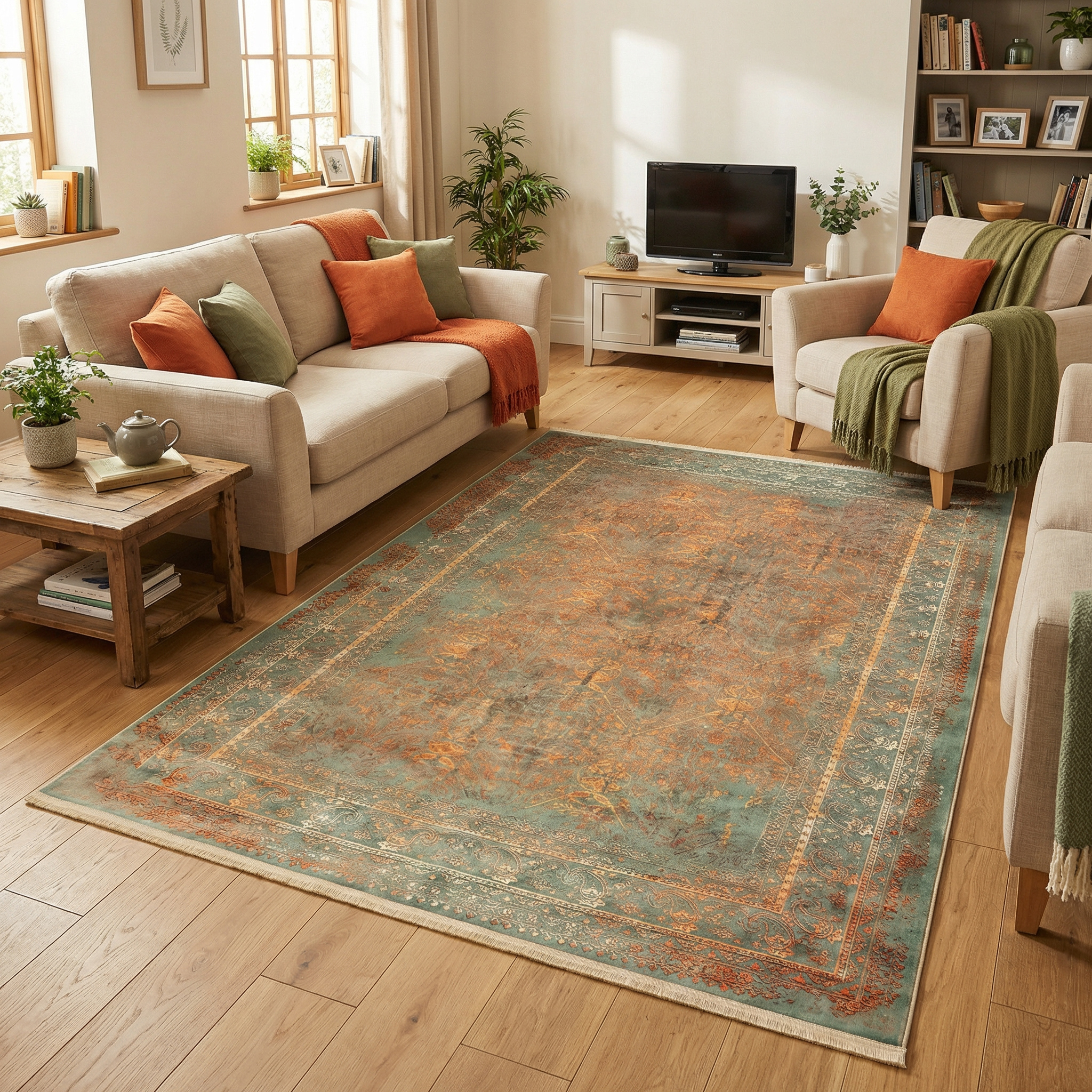 فرش ماشینی نوستالوژیا طرح 310600 سبز 1200 شانه