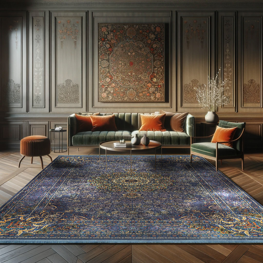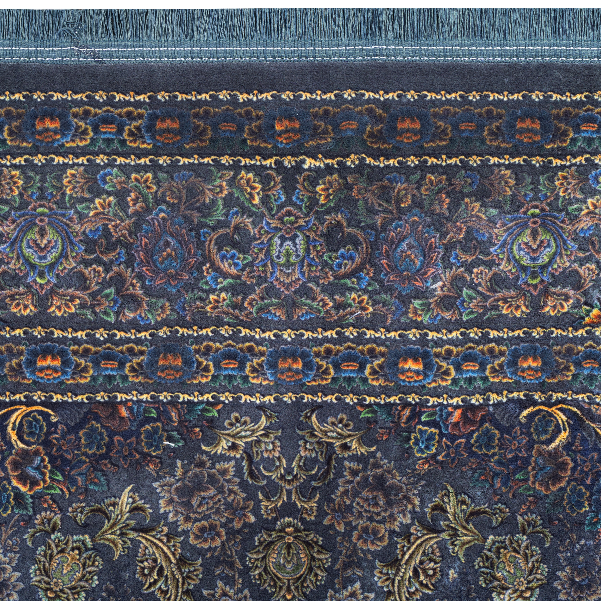 فرش ماشینی هلنا 25NH0020 فیروزه ای تیره معادل 77 رج دستبافت