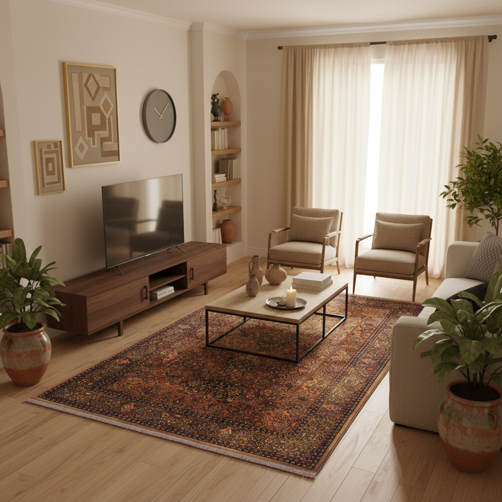 فرش ماشینی هلنا 25NH0090 زیتونی معادل 77 رج دستبافت