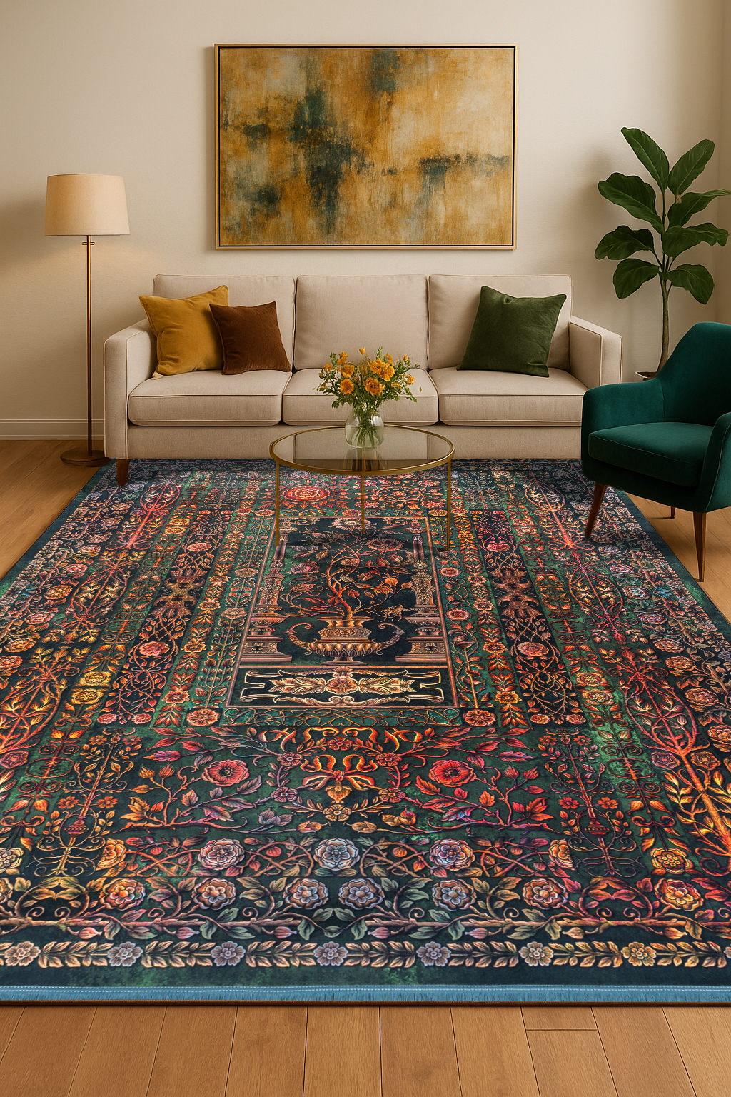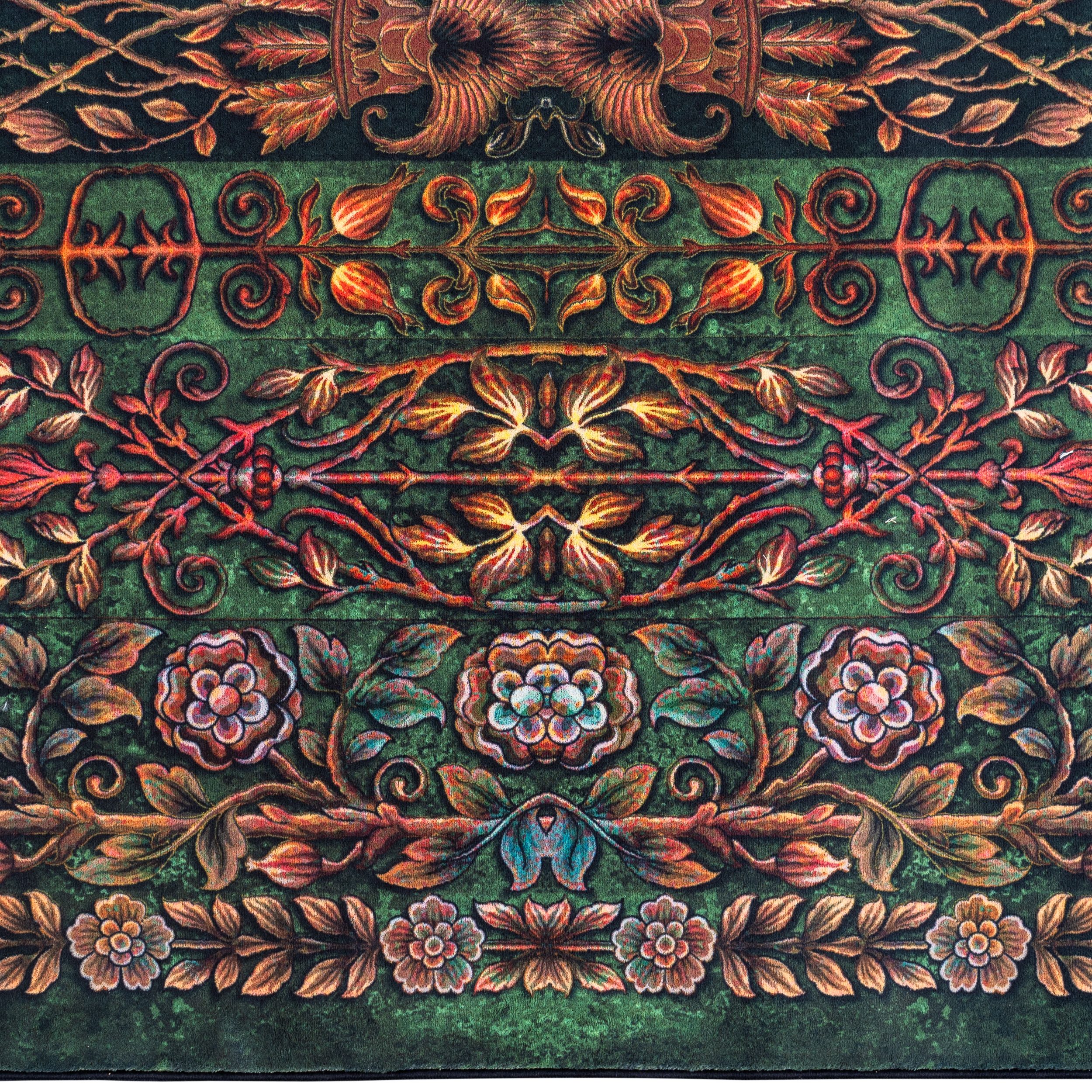 فرش ماشینی هلنا 25TT0020 سبز معادل 77 رج دستبافت