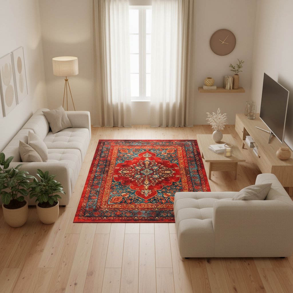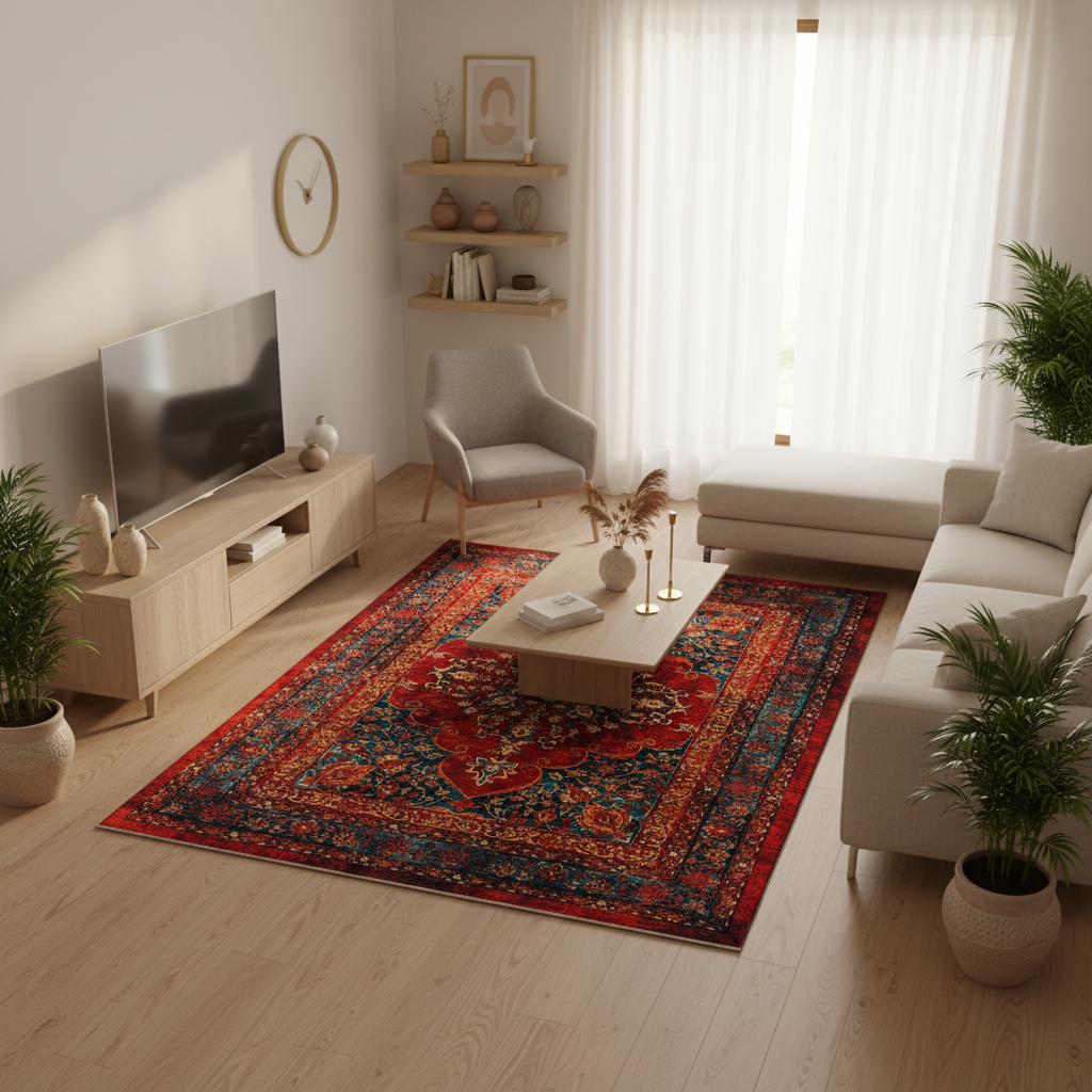 فرش ماشینی هلنا 25TT0050 لاکی معادل 77 رج دستبافت