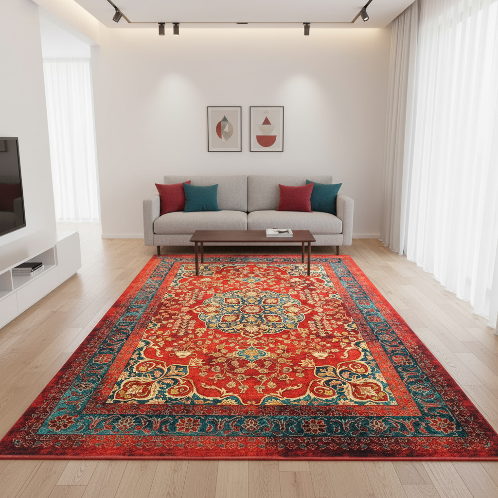 فرش ماشینی هلنا 25TT0080 لاکی معادل 77 رج دستبافت
