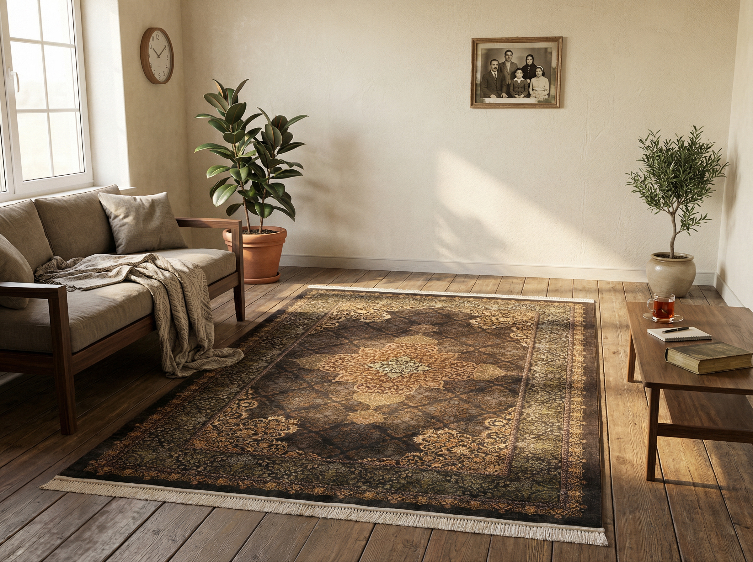 فرش ماشینی وینا طرح 25NV0000 قهوه ای 1200 شانه