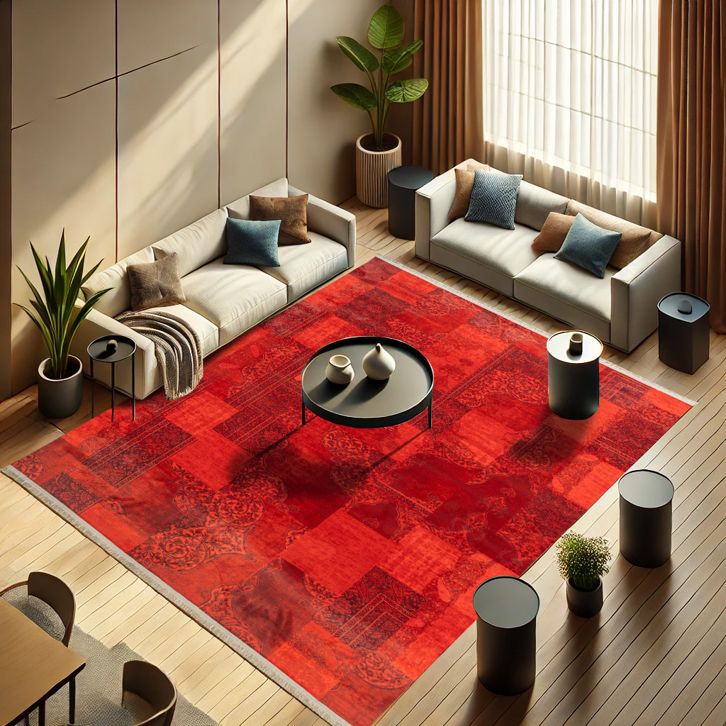 فرش ماشینی چهل تکه طرح 25PP0010 عنابی 700 شانه
