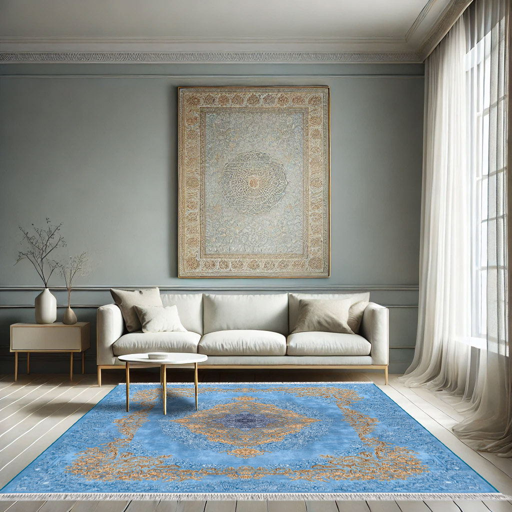 فرش ماشینی کهربا کد 25NK0020 آبی نفتی 1200 شانه