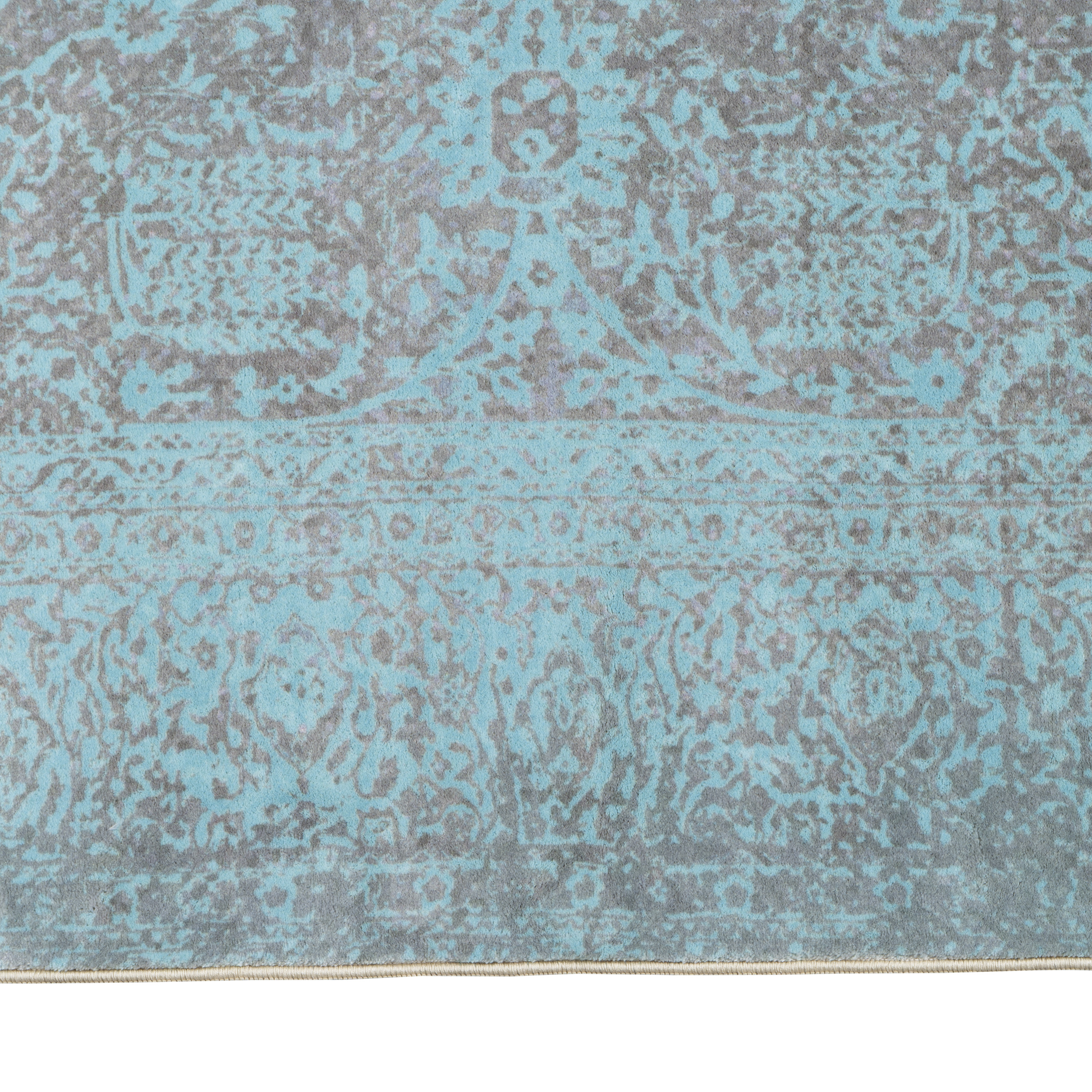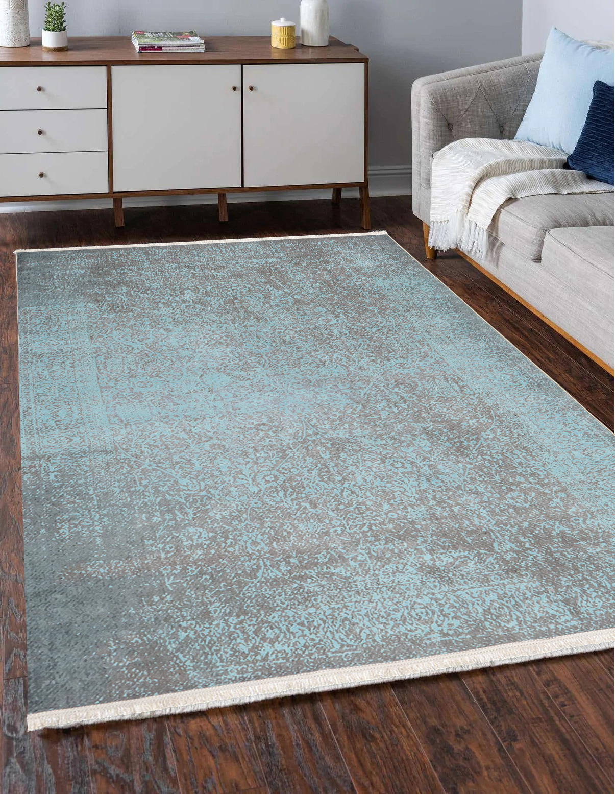 فرش ماشینی کهنه نما طرح 100636 فیروزه ای 700 شانه