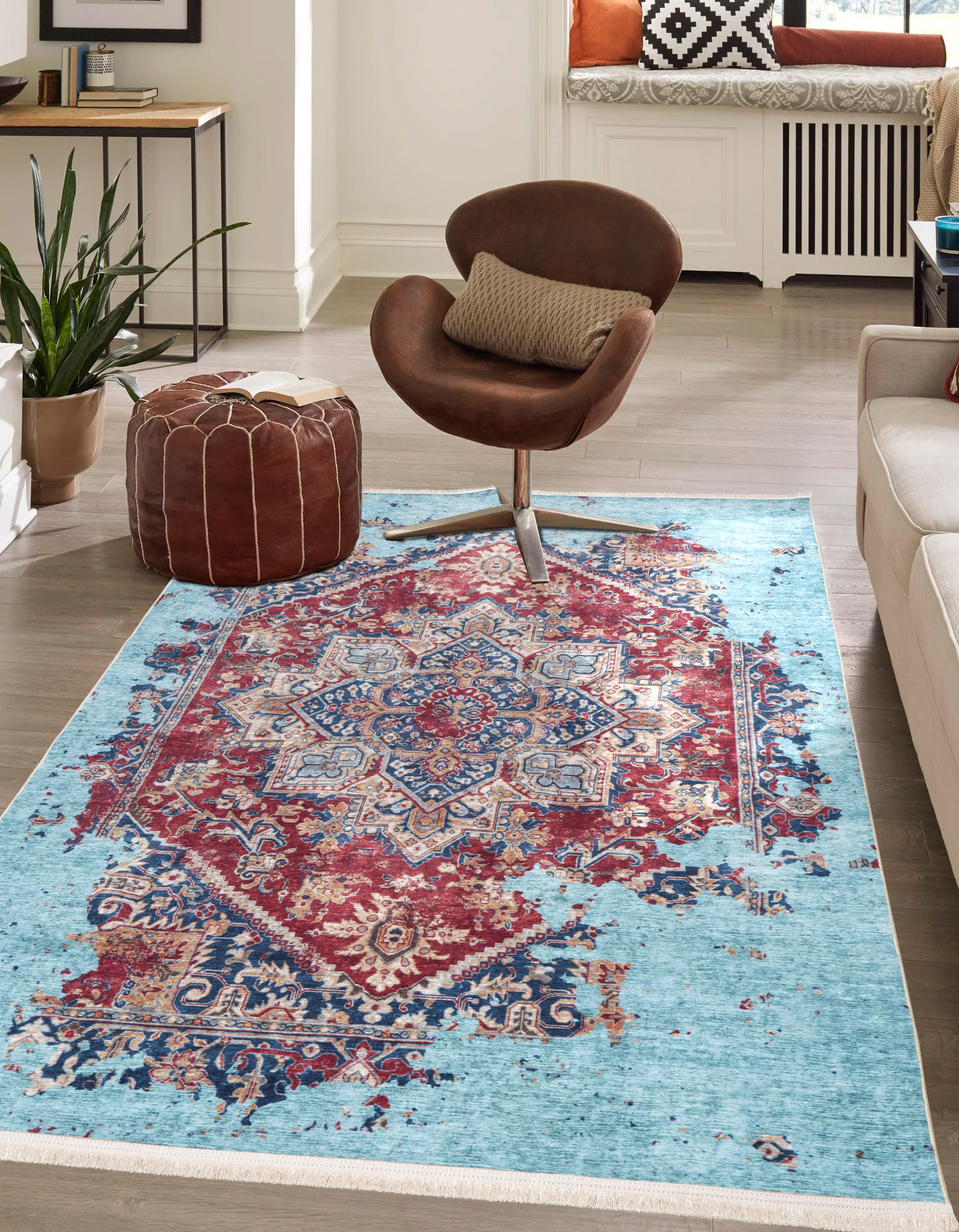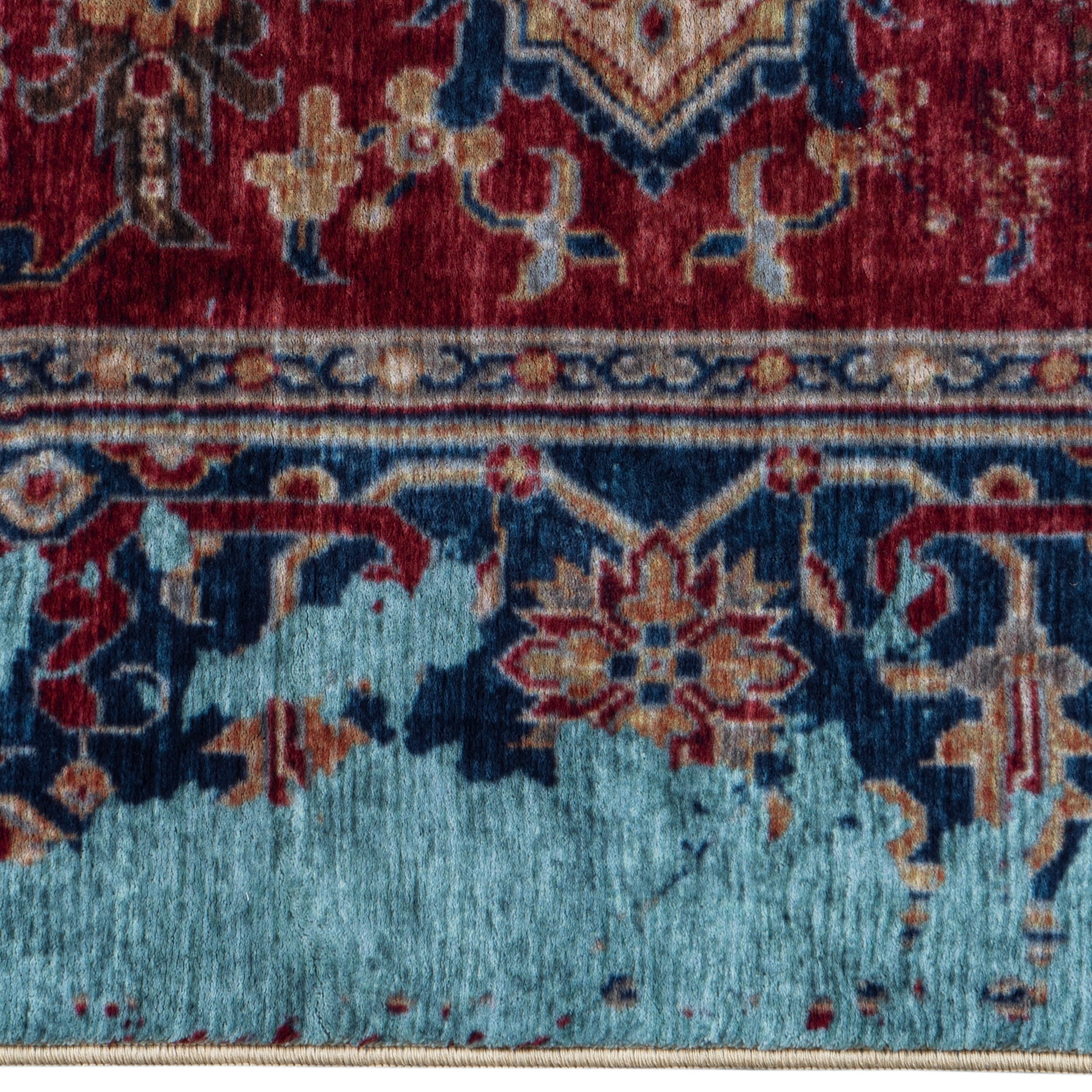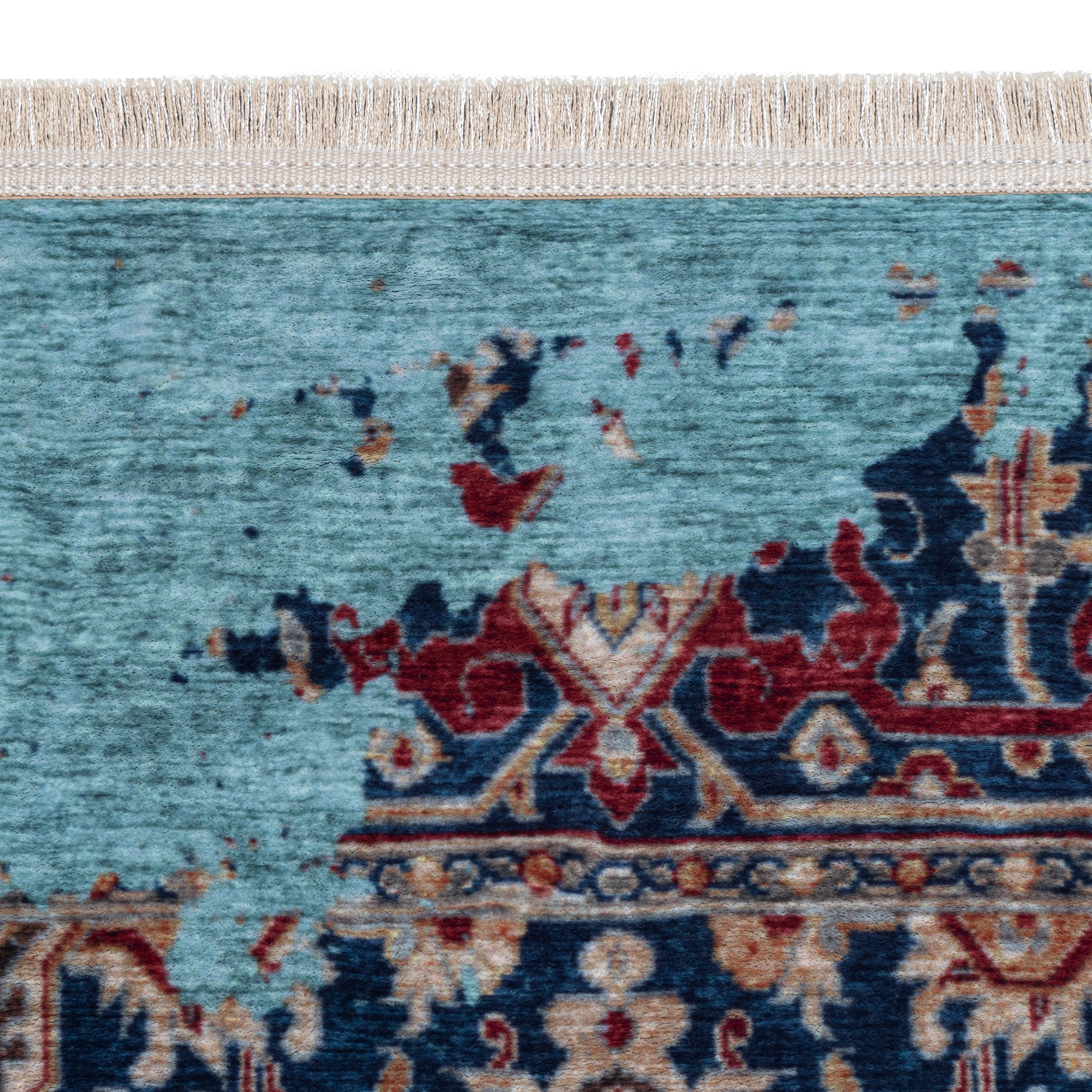 فرش ماشینی کهنه نما طرح 100649 فیروزه ای 1000 شانه