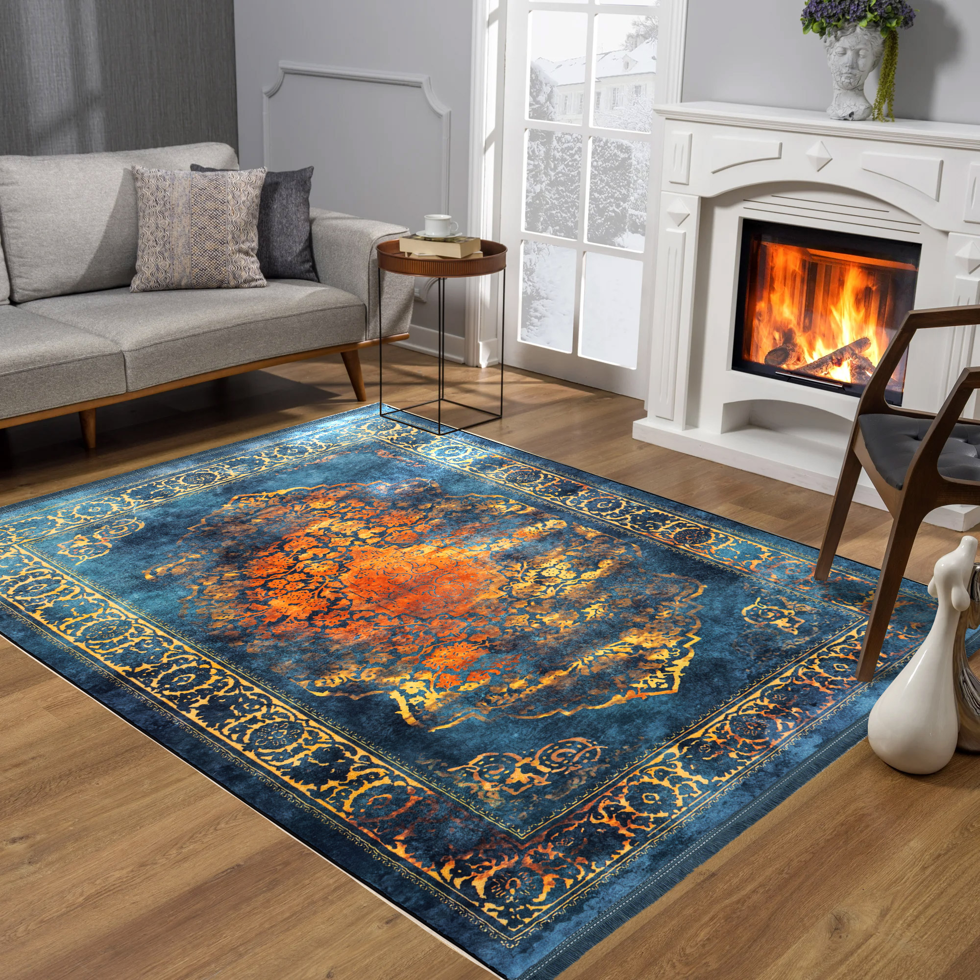فرش ماشینی کهنه نما طرح 900446 سبز 1000 شانه