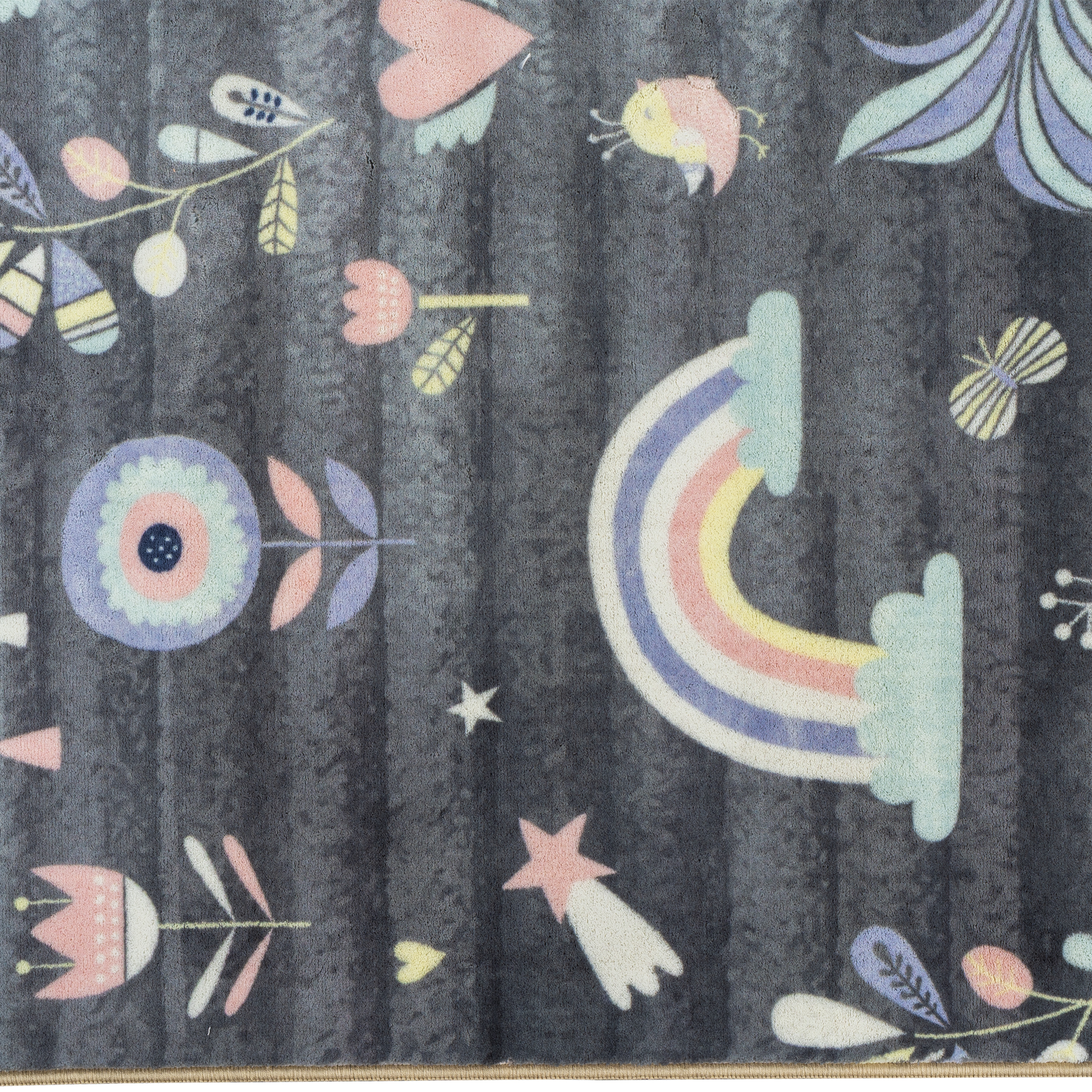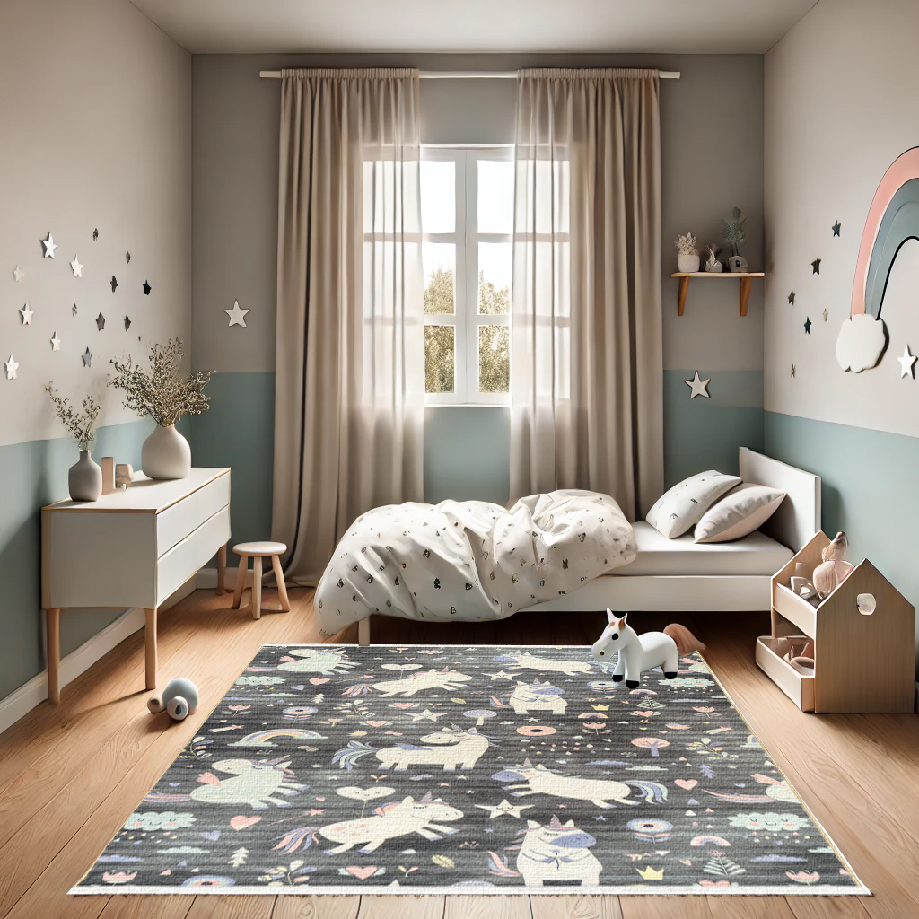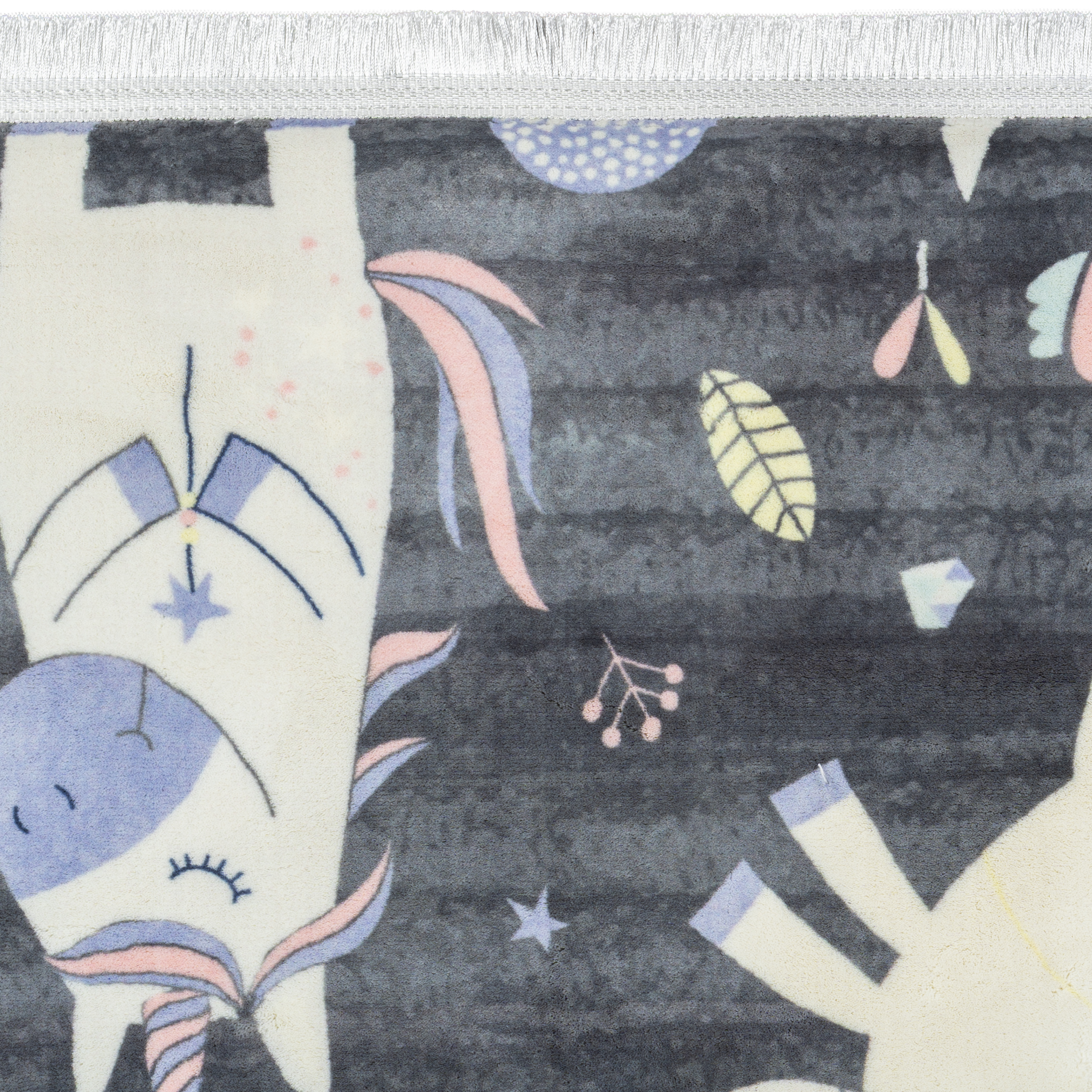 فرش ماشینی کودک طرح اسب تک شاخ کد 25KM0030 خاکستری 700 شانه