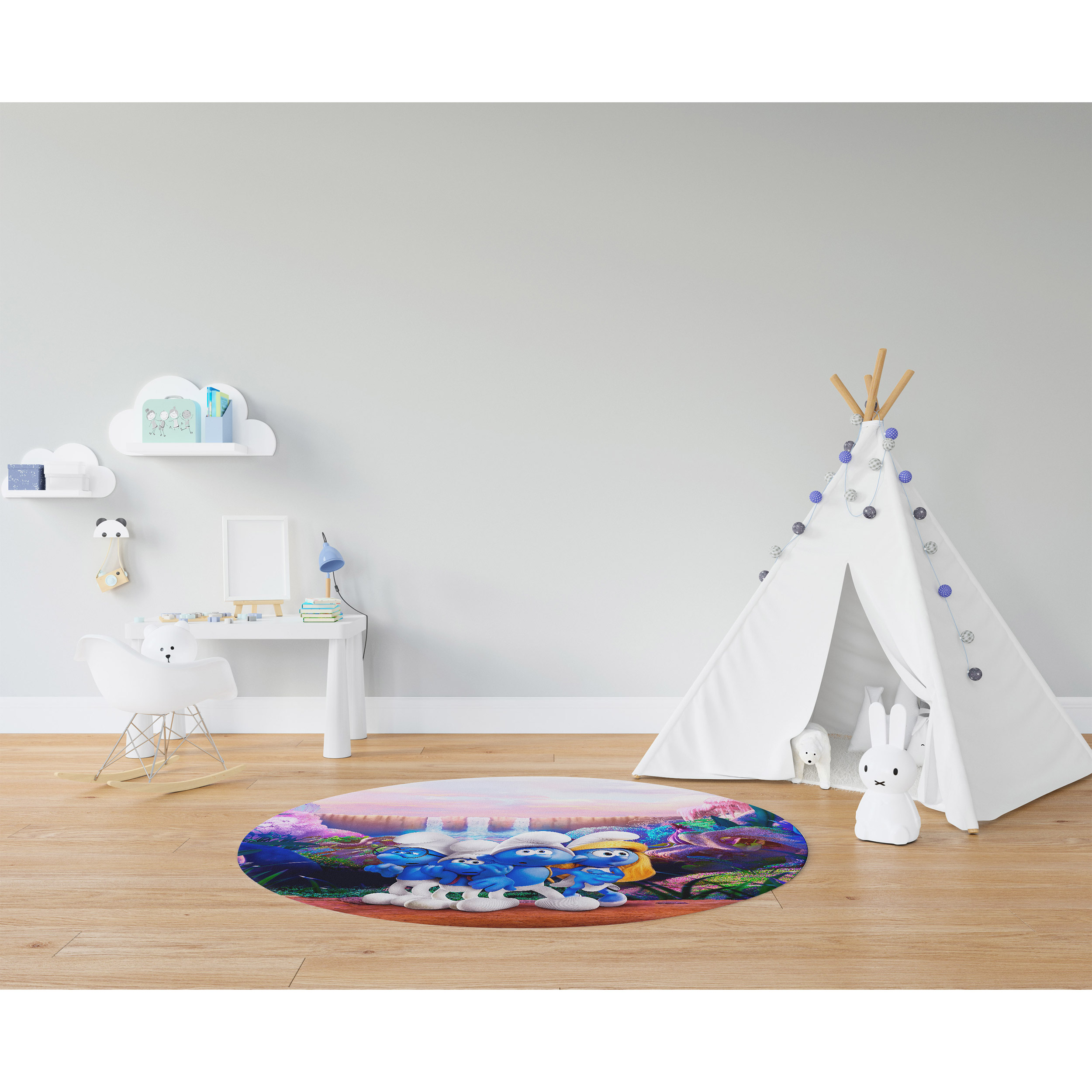 فرش ماشینی کودک گرد طرح اسمورف ها کد 100236 تمام رنگ 700 شانه