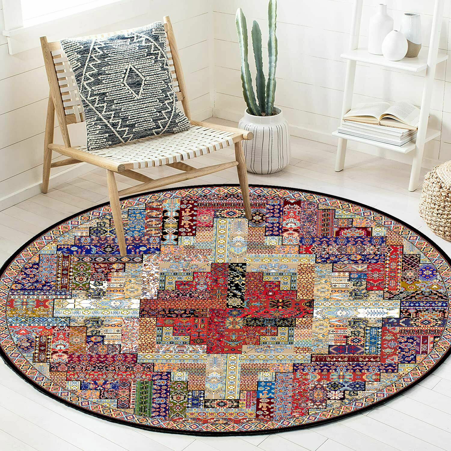 فرش ماشینی گرد چهل تکه طرح 100525 تمام رنگ700 شانه