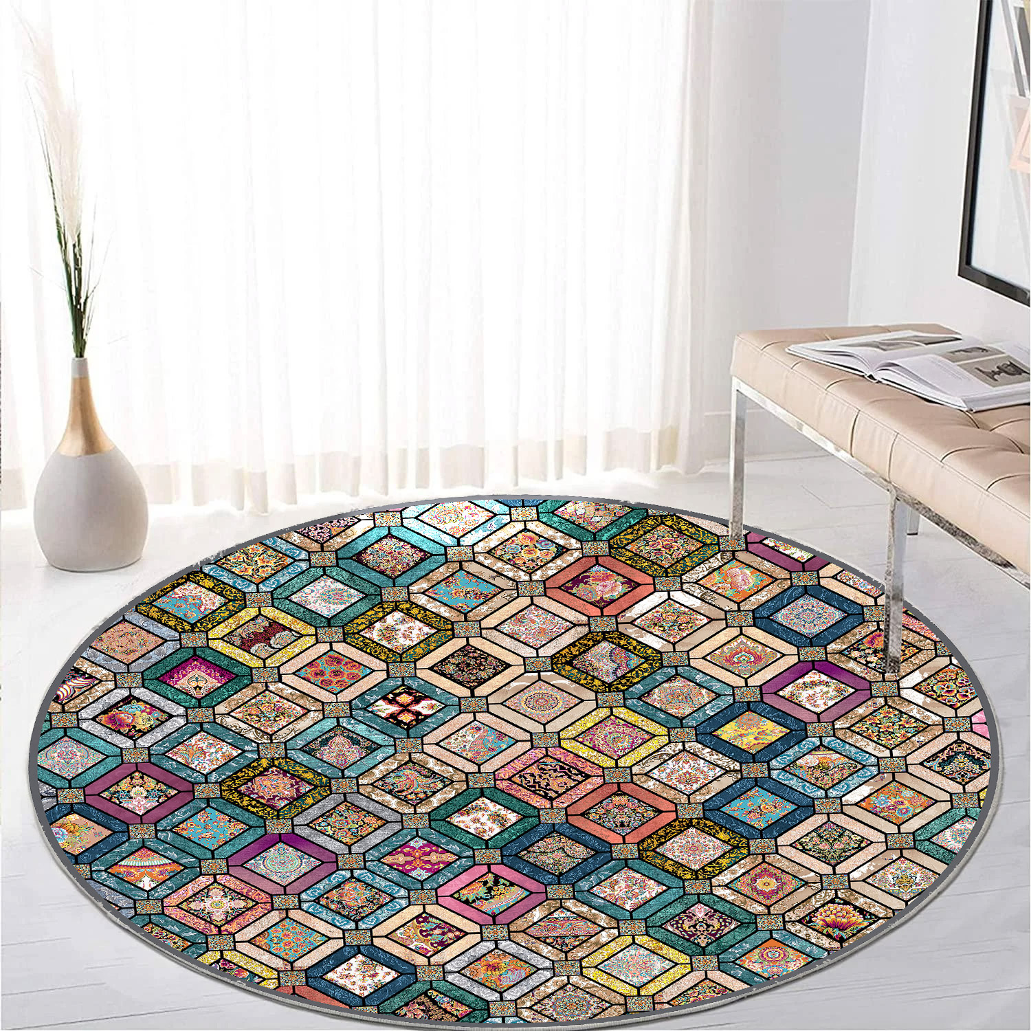 فرش ماشینی گرد چهل تکه طرح 100534 تمام رنگ700 شانه