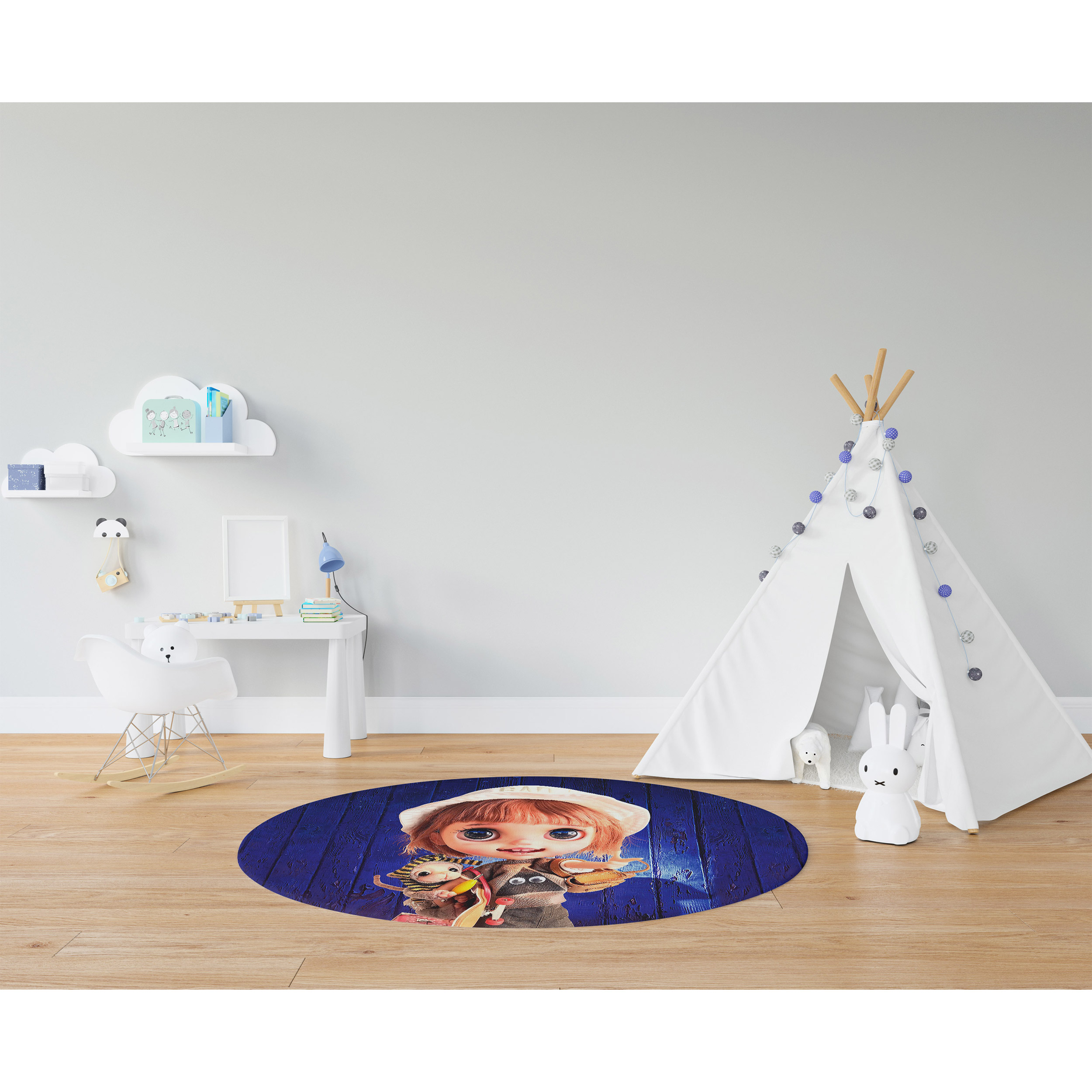 فرش ماشینی گرد کودک طرح کتی کد 100256 تمام رنگ 700 شانه