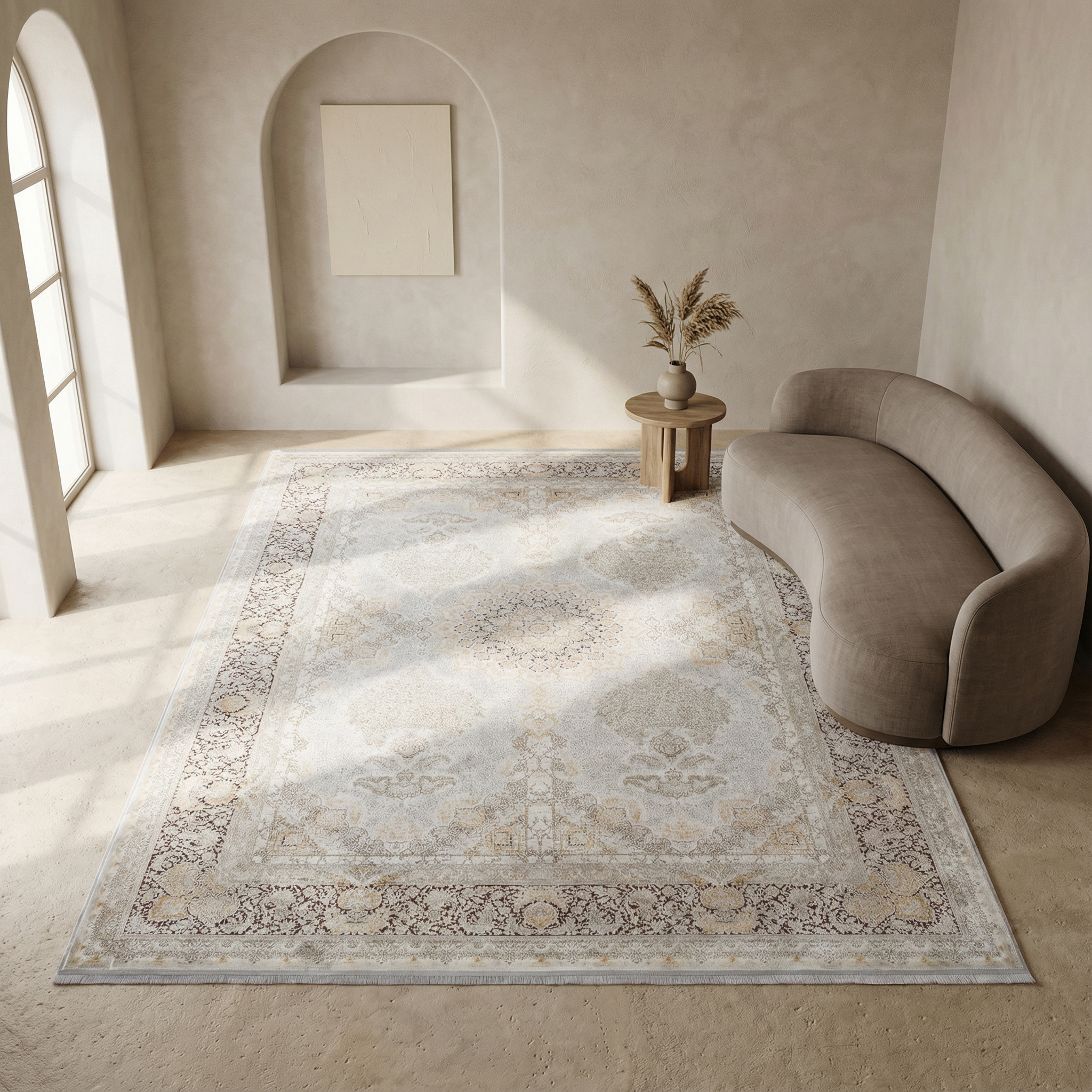 فرش ماشینی طرح آنا کد 10AN0040 نقره ای 1500 شانه