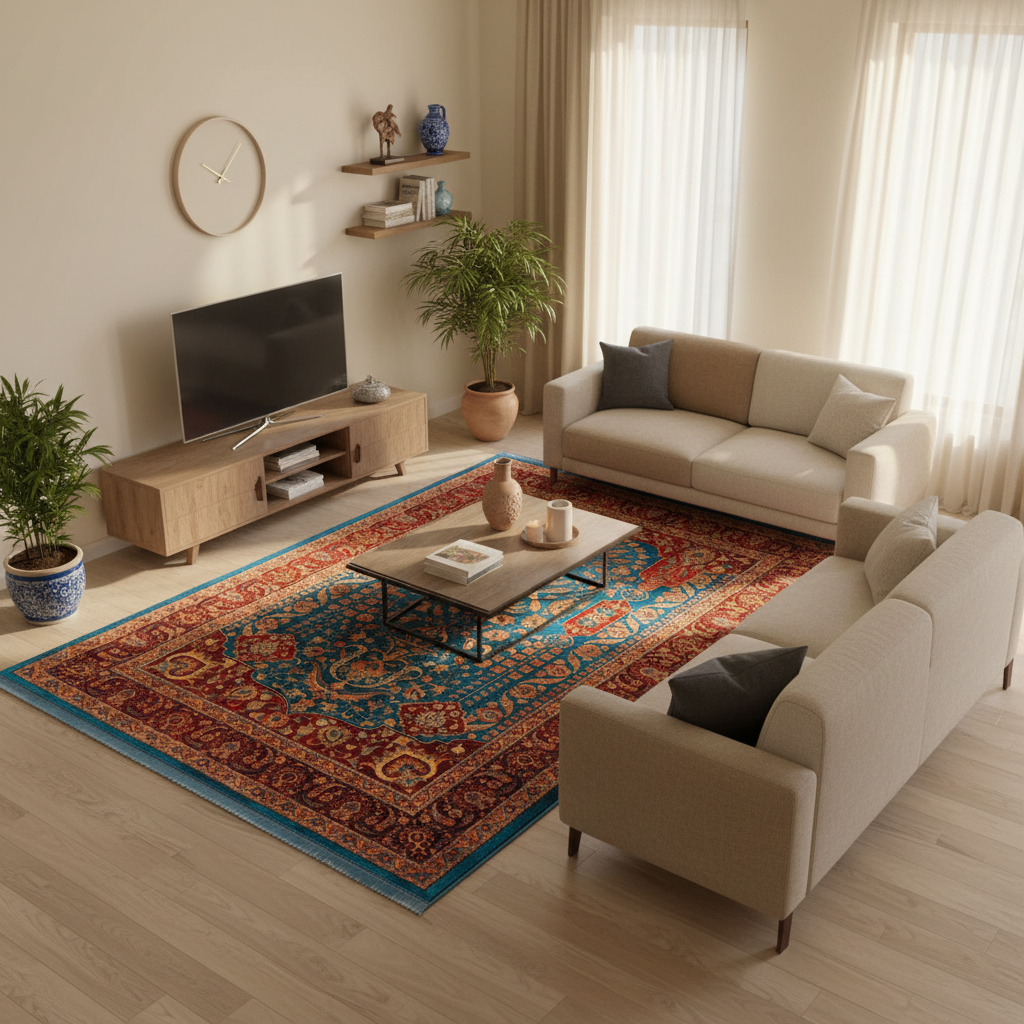 فرش ماشینی هلنا 25NH0070 سبز 77 رج دستبافت