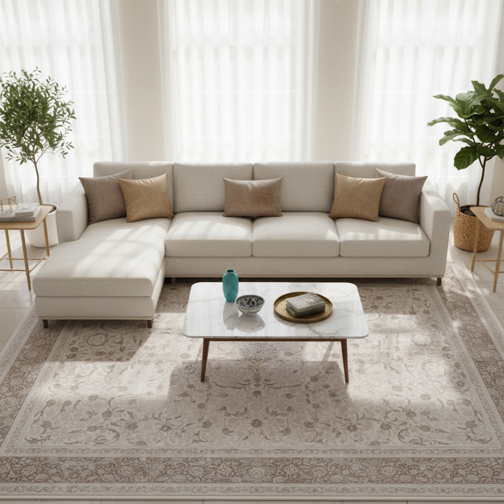 فرش ماشینی پالمرا طرح 10PA0170 کرم 1500 شانه
