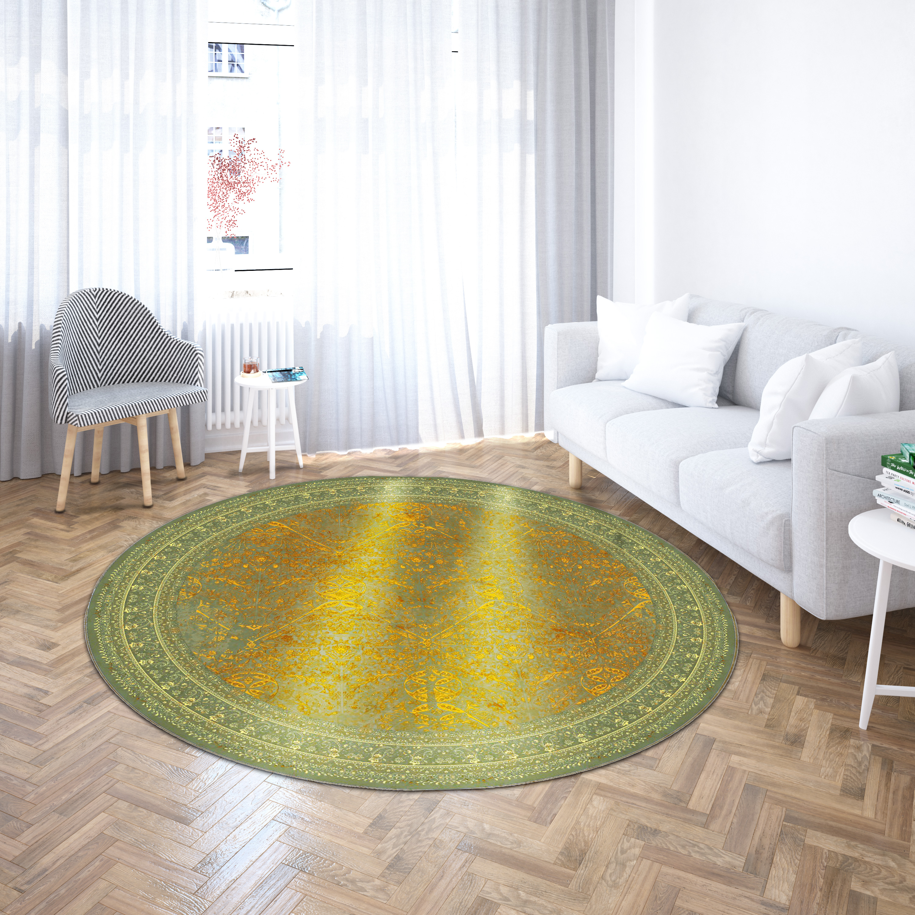 فرش نوستالوژیا گرد کد 300600 سبز 1200 شانه