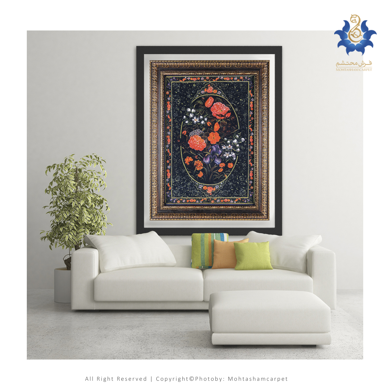 تابلو فرش ماشینی طرح گل کد 1916 تمام رنگ 1200 شانه