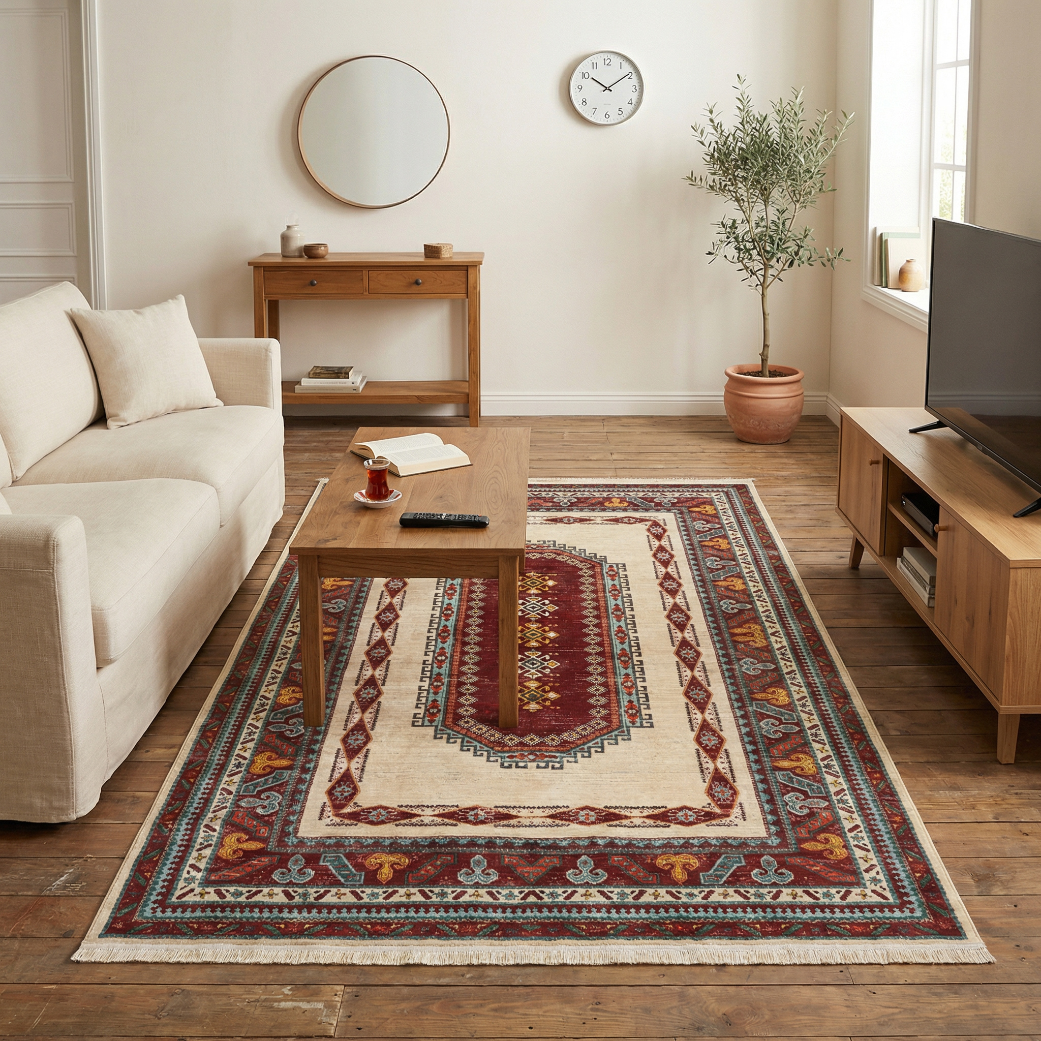 فرش ماشینی سنتی طرح 100334 کرم 1000 شانه