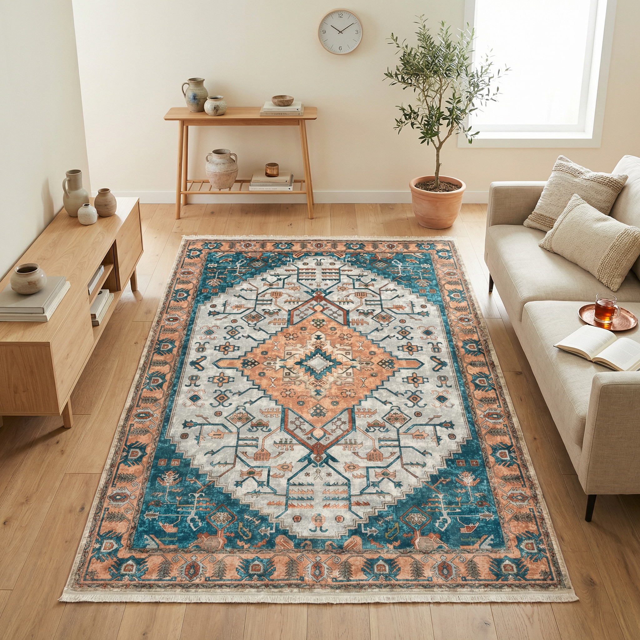 فرش ماشینی سنتی طرح 100342 کرم 1000 شانه